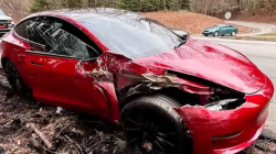 你远离右侧车道开了过去,果不其然又看到了事故现场,只不过这次换成了特斯拉