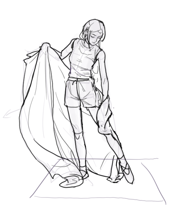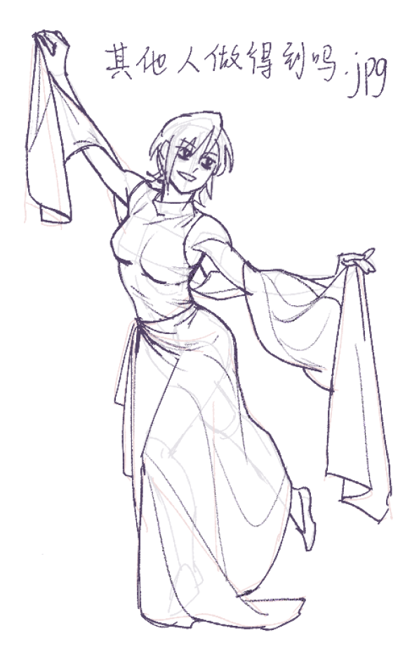 这张是昨天课前画的,可以看到画到最后一步了还在调整比例,而且这张起稿是起了两次的,第一次起稿没有画出趋势的感觉,之后再调整也麻烦,干脆重新起稿