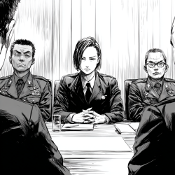 警局会议室的灯光半开着,像是有什么话要诉说,又像是想遮掩什么,坐在办公室里的几人神情各异,观察着坐在会议桌旁的三名穿着警服的男人,同样的,三个警察也以专业的目光审视着坐在会议室里的几个形形色色的“调查者”。