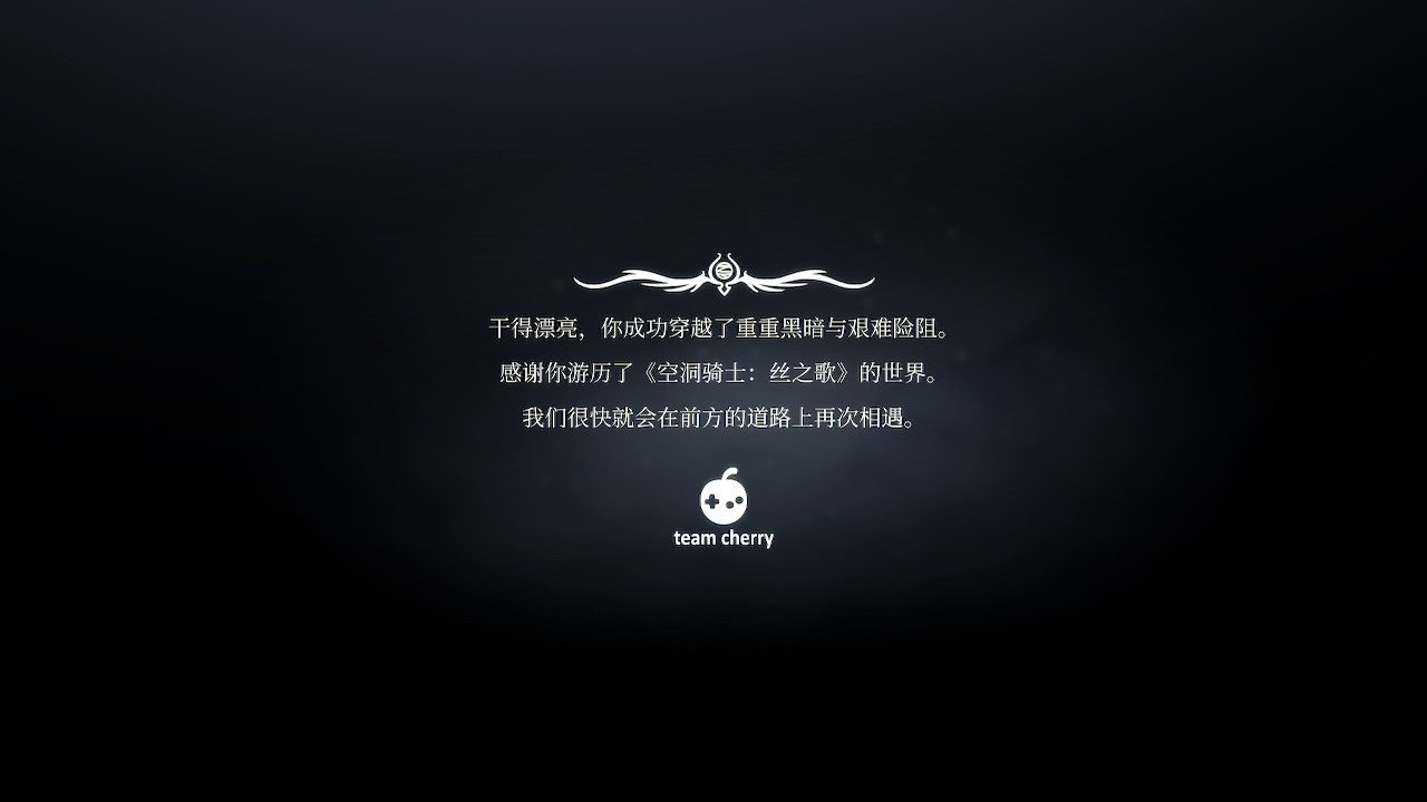 社畜趁着国庆假期终于打完了,从潜入深渊开始整个游戏的节奏都不一样了,后面梦境里看见鹿角站牌子的那一刻恍惚了,仿佛又回到了学生时代打空洞骑士的日子,大黄蜂的很多台词也很有感觉,最后结局看见小骑士的时候的心情更是难以言表,真的是好游戏,樱桃你太伟大了( TдT)