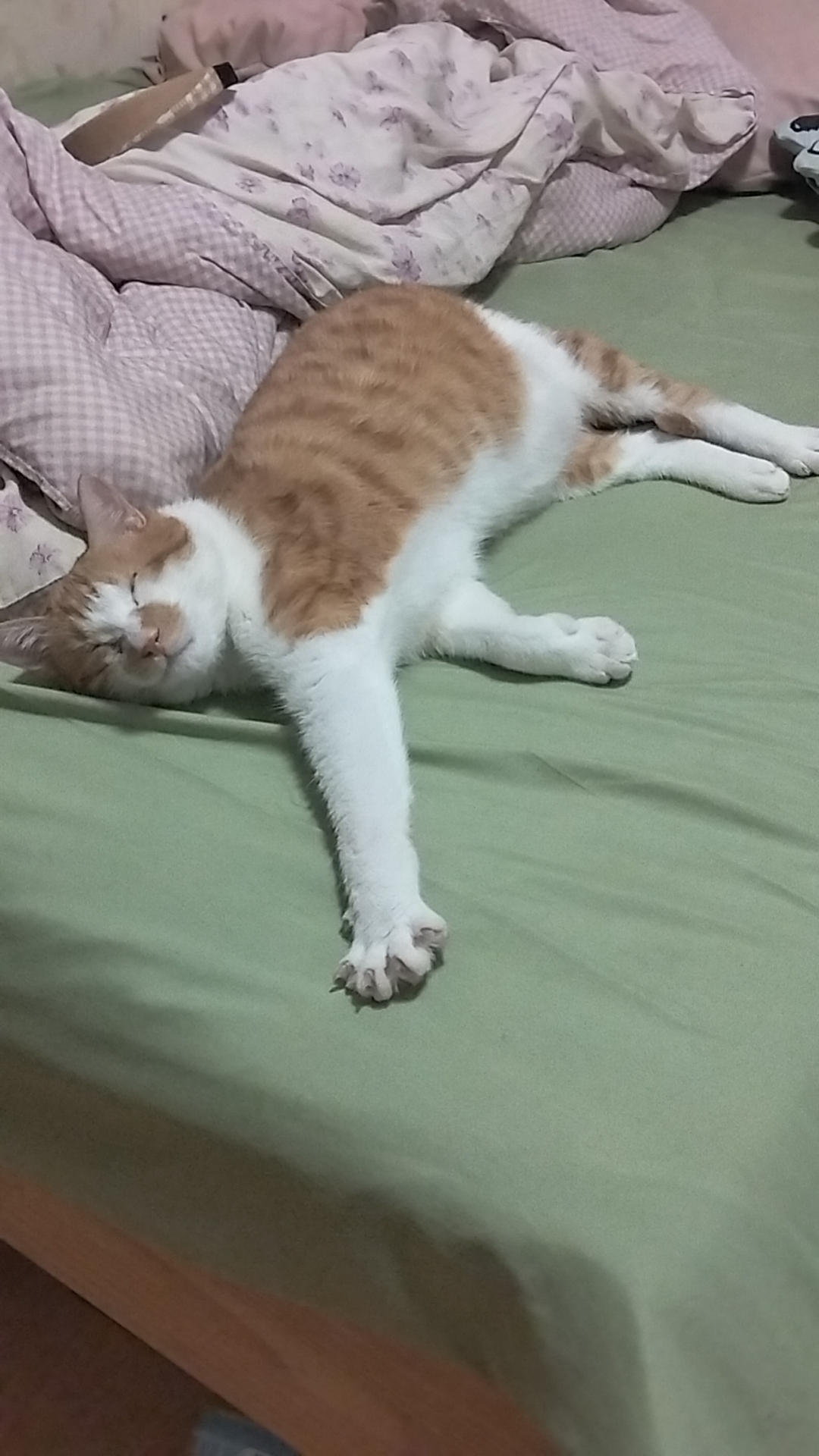 猫不是很老实,在我身上蹭来蹭去,可能是觉得我身上硬邦邦的于是孤身一猫去床上趴着了。