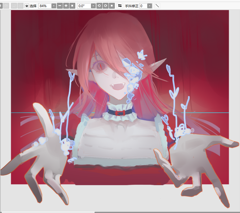 另外手的冲击感不够,因为我不会画这个角度这个透视的手,也没有找参考。
