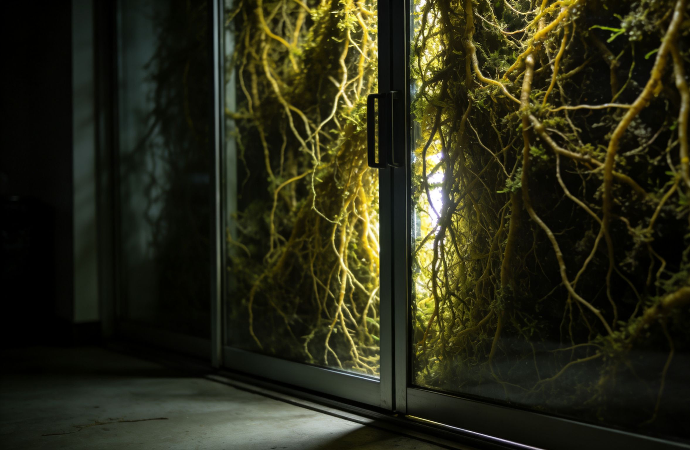 于是你赶忙退开,从观景台跑回室内,所幸这观景台的玻璃门还没坏,你立刻将其拉上,便看到密密麻麻的黄色触肢将玻璃门彻底覆盖,并从缝隙处不断尝试向内部渗入。
