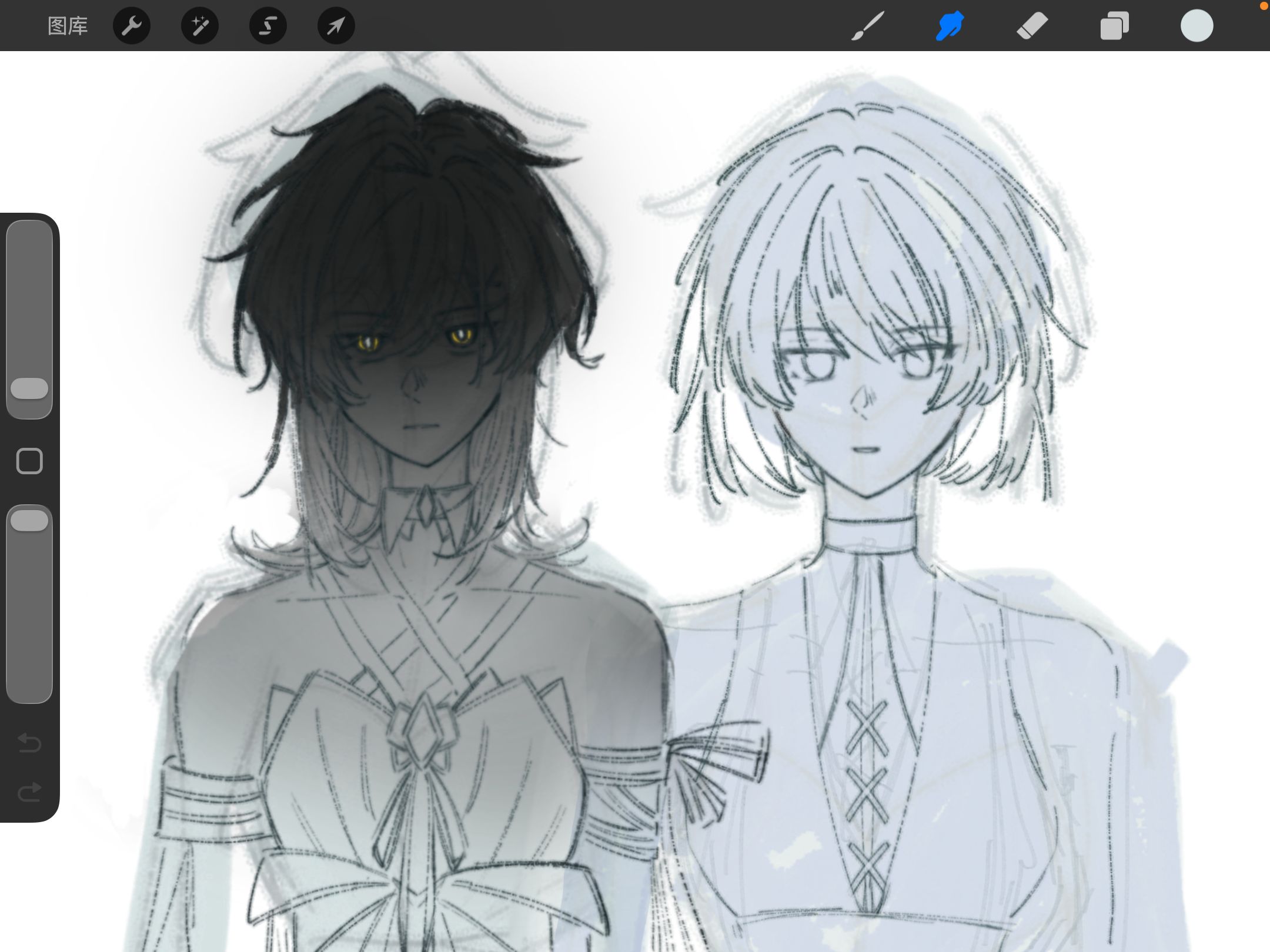 真的很喜欢自己调的这个包浆笔刷,比之前不知道从哪里存下来的好用多了不知道为什么……好顺手,容错率太高了对我这种特爱蹭线叠线的人友好太多