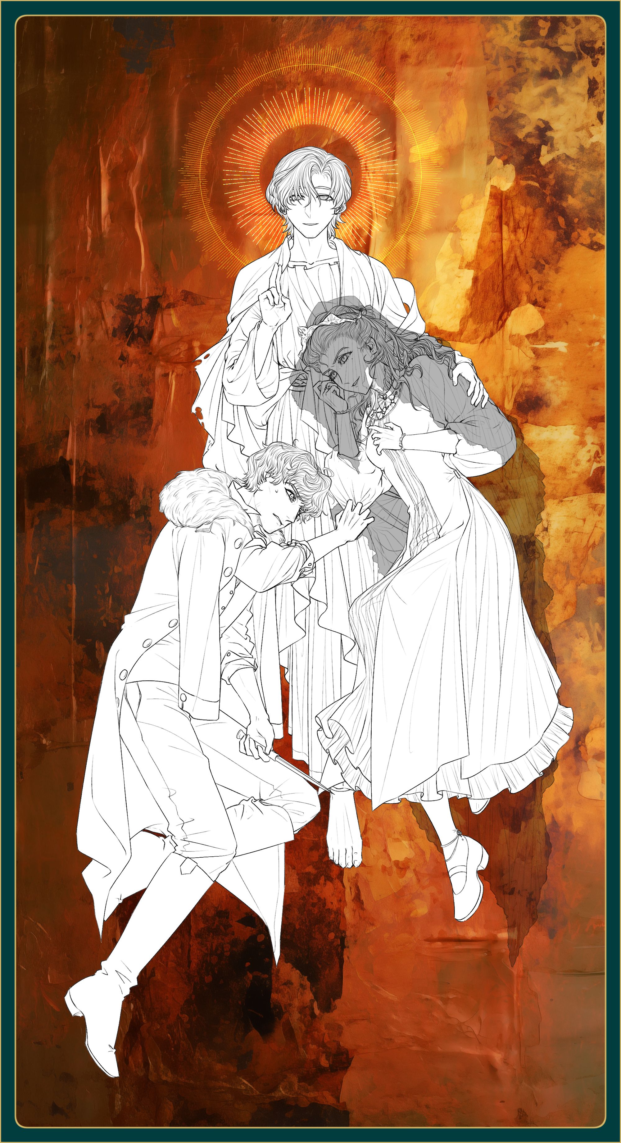 纳斯塔霞的脸更是折磨中的折磨,太美了没有傲气,傲气太多就显刻薄,不想显得刻薄就画美,一直出于死循环中,改到现在只觉得以我目前的技术还还原不出心目中的纳斯塔霞,只能用又哭又笑的神态来概括她优美的精神状态