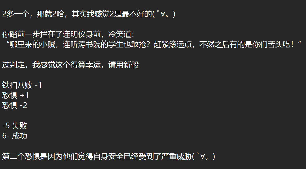 过判定啦,这回又是幸运,新骰( ゚∀。)