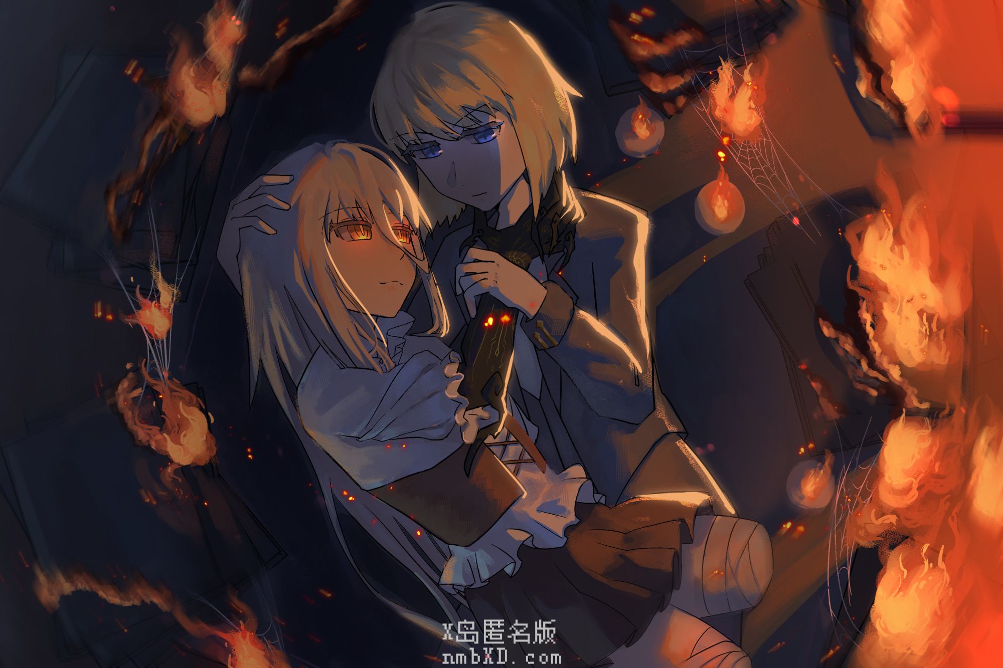 萨姆斯不动声色地挪开视线,看向更深处。布里奇小姐——兰德琳正坐在一旁,原先簇拥着她的佣人们也消失得无影无踪,但她似乎对此并不惊讶。远处宴会厅的角落里,还有一个灰白的、坐着轮椅的影子,萨姆斯一眼便认出那是先前遇到的落魄王子斯里南。顺着宴会厅的阶梯向上,萨姆斯很快发现了那两个主导者的影子:达兰·赫卡特和布拉泽·布里奇,二人正肩并肩站在阶梯之上。但奇怪的是,二人面前还站着一个绝不该出现在这的人物——