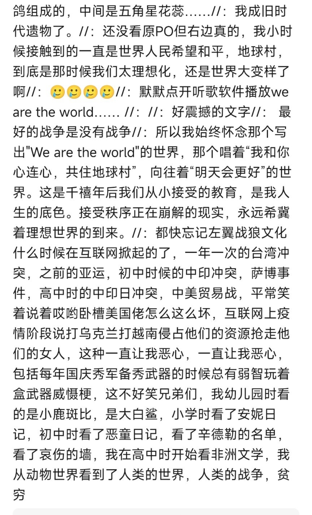 说到we r the world,今年央视春晚不还有这首歌来着,我记得当时一边和家里人搓麻将一边听到的