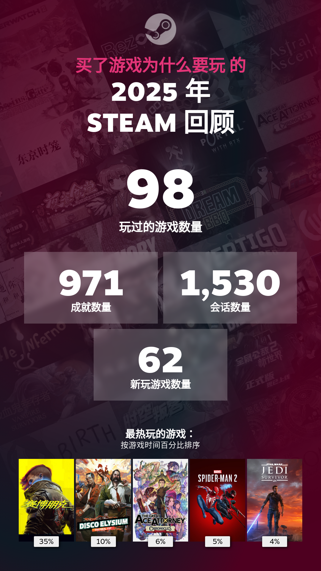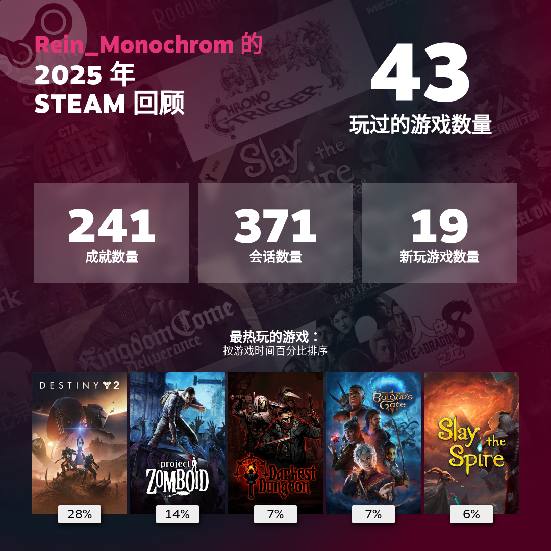 2025年度steam报告已经出来了,看看肥哥们的(`・ω・)