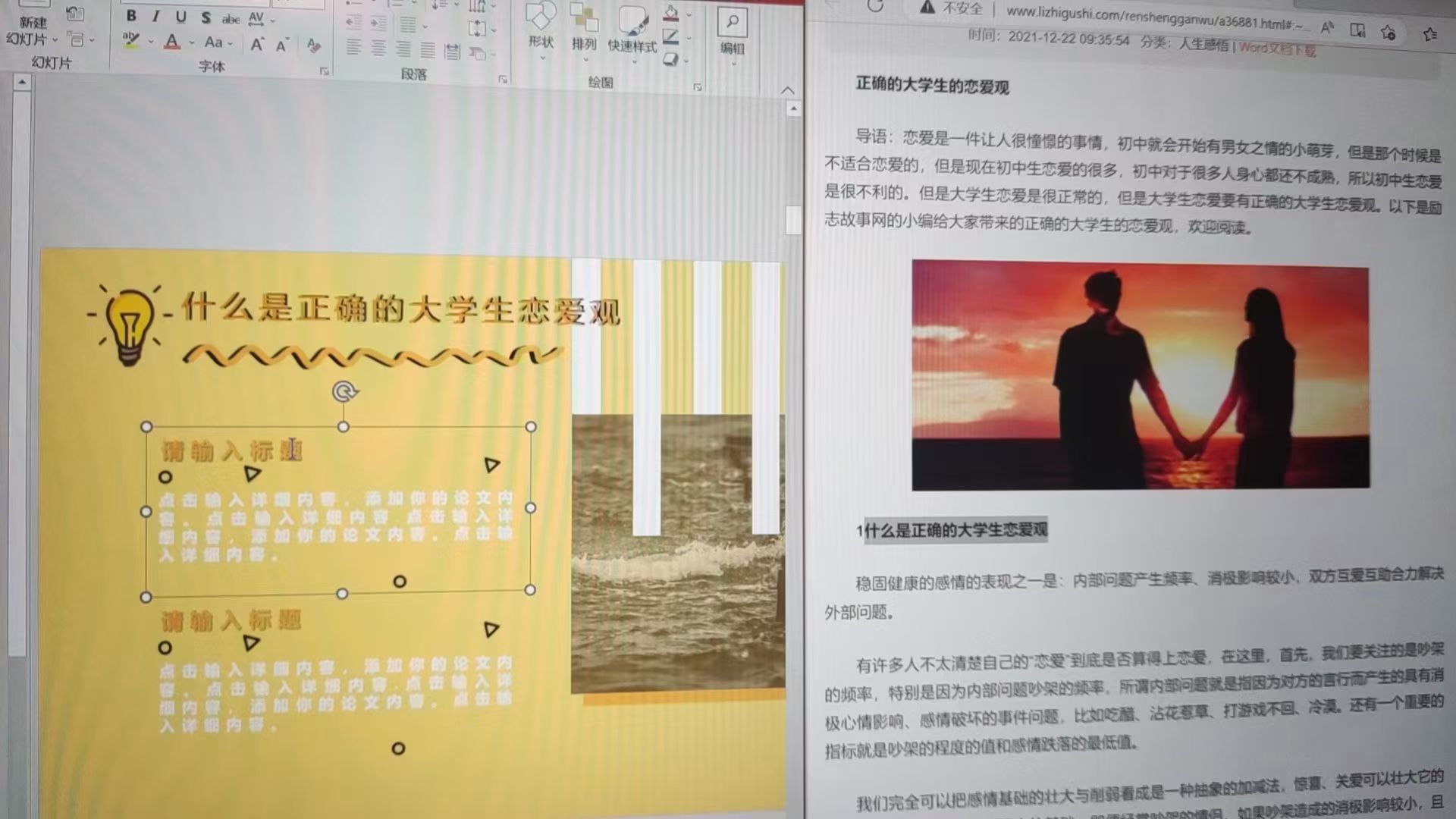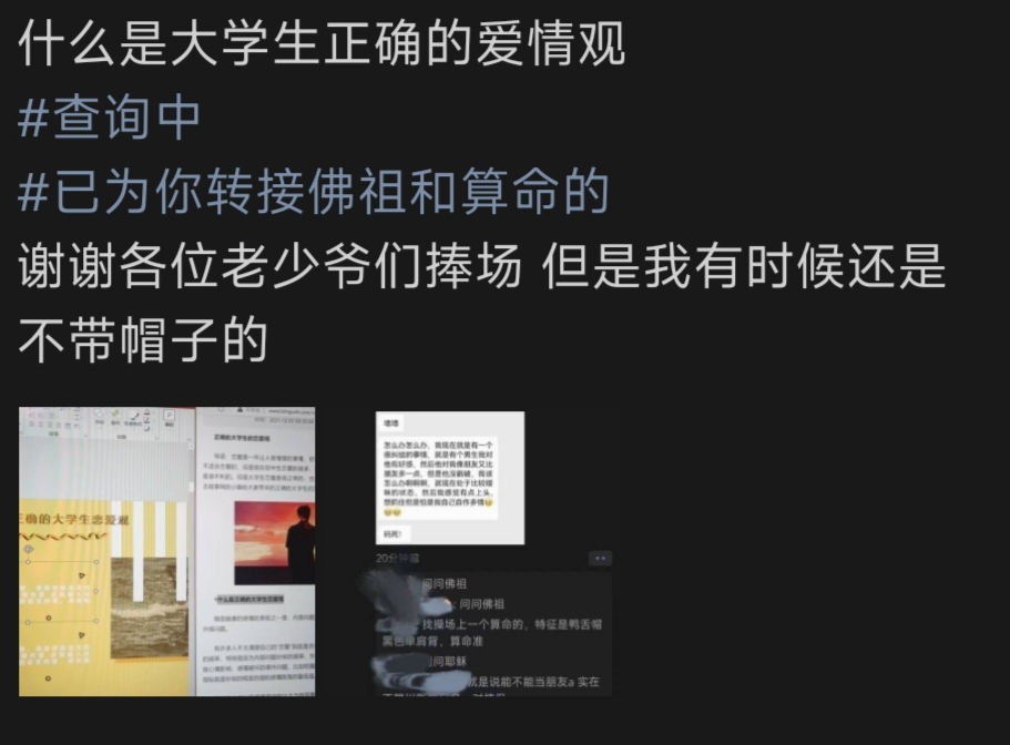 然后那天晚上辅导员刚好找他,要他做一个恋爱ppt( ゚ω゚)