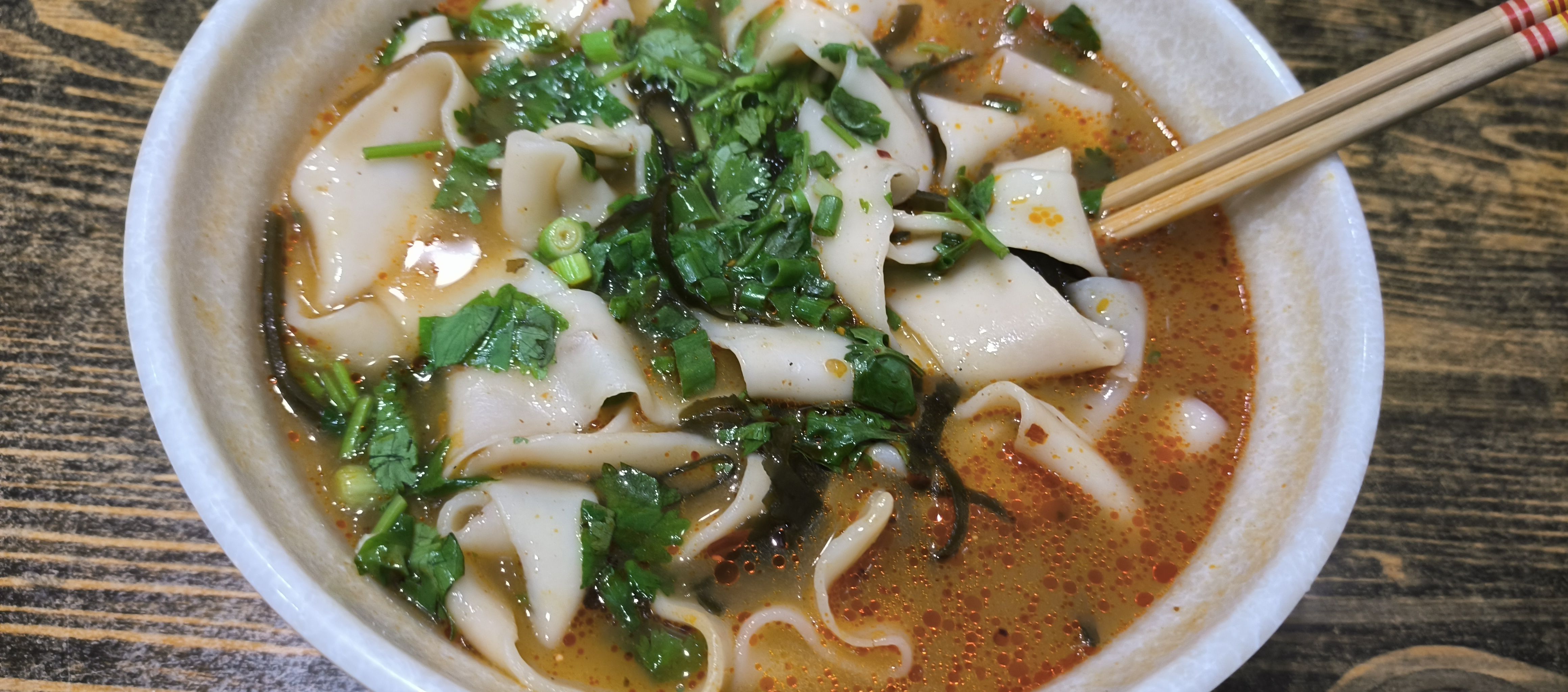 烩面这东西其实挺自由,主要因为这种面叫烩面胚,所以怎么煮都算烩面,哪怕浇点番茄炒蛋都行( ゚ 3゚)
