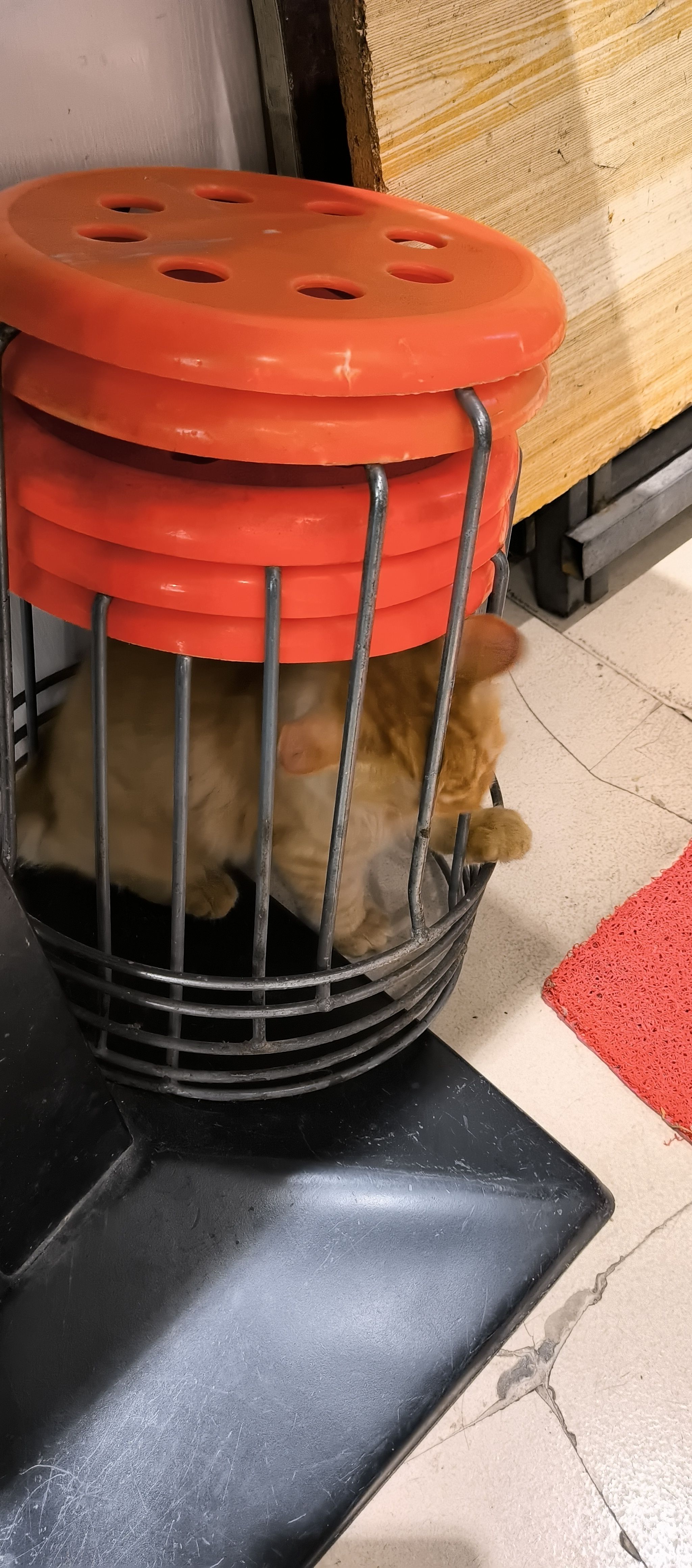 从缝隙钻进去,然后被坏蛋小肥转动凳子手动取消缝隙而困住的土豆豆(`ヮ´ )