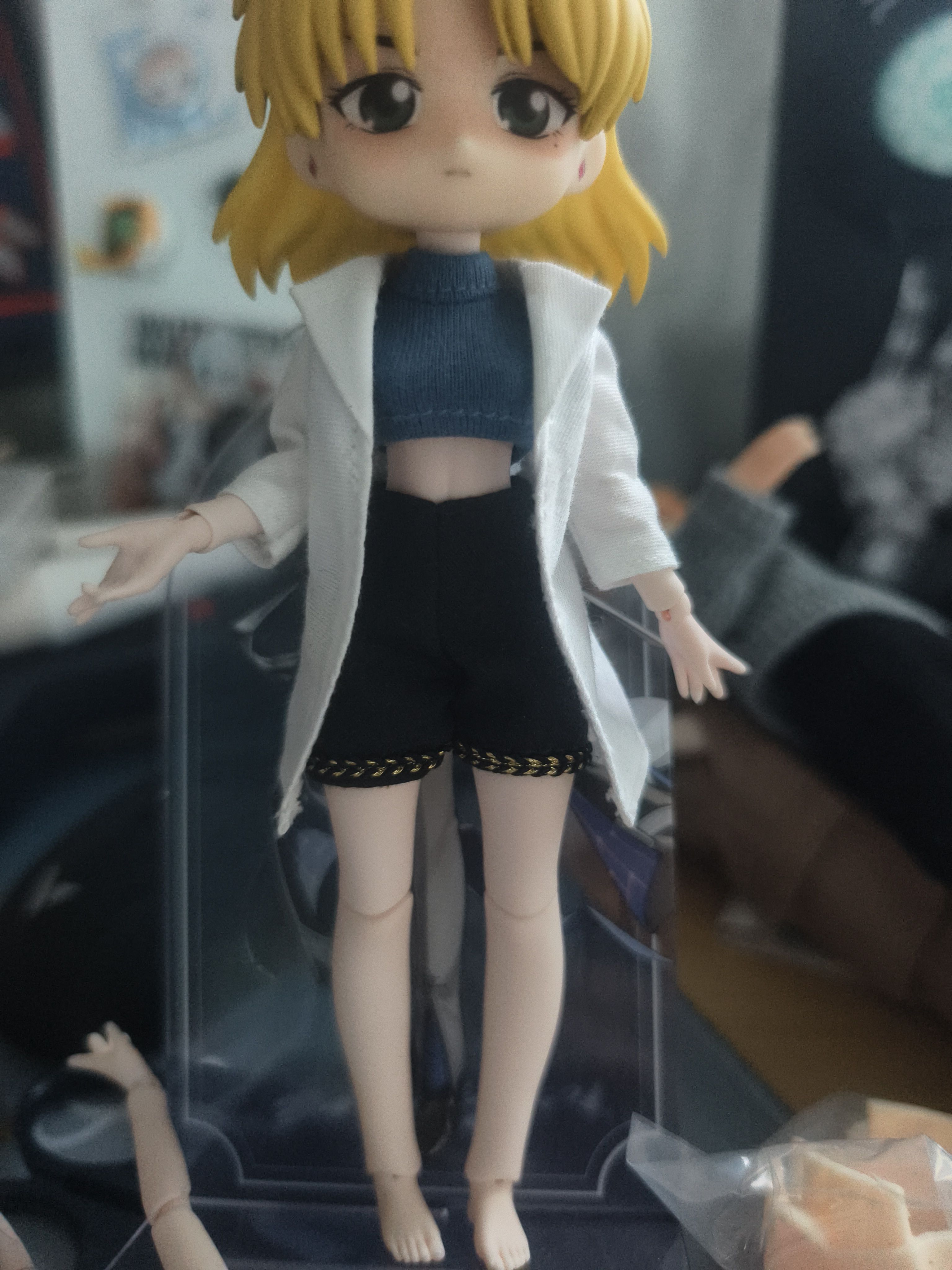 我最近半年新买了一个四分,头体衣服都等到了,但因为想搞cos娃又拿不定cos谁没搞假发眼珠所以迟迟没有组装( ゚∀。)