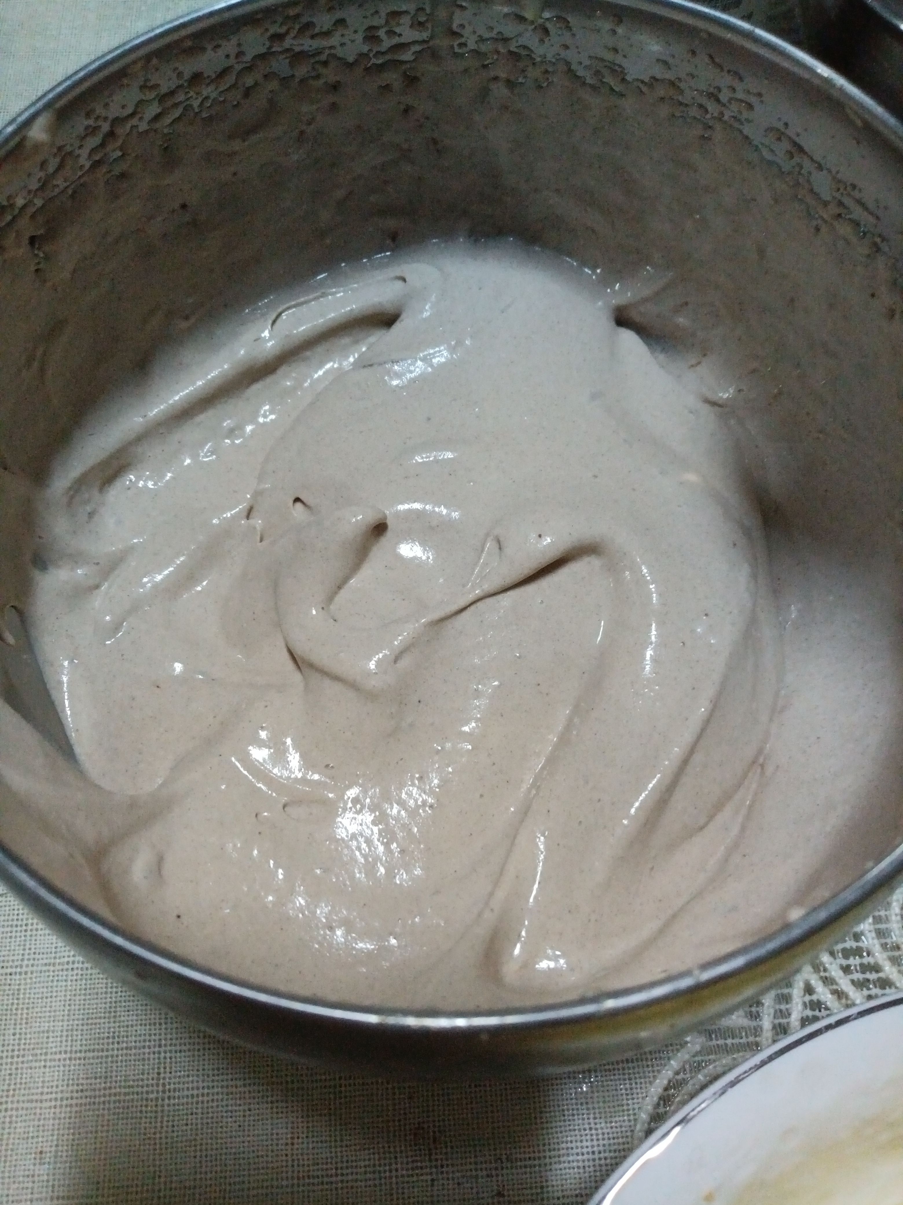 然后把淡奶油里加入可可粉和砂糖打发