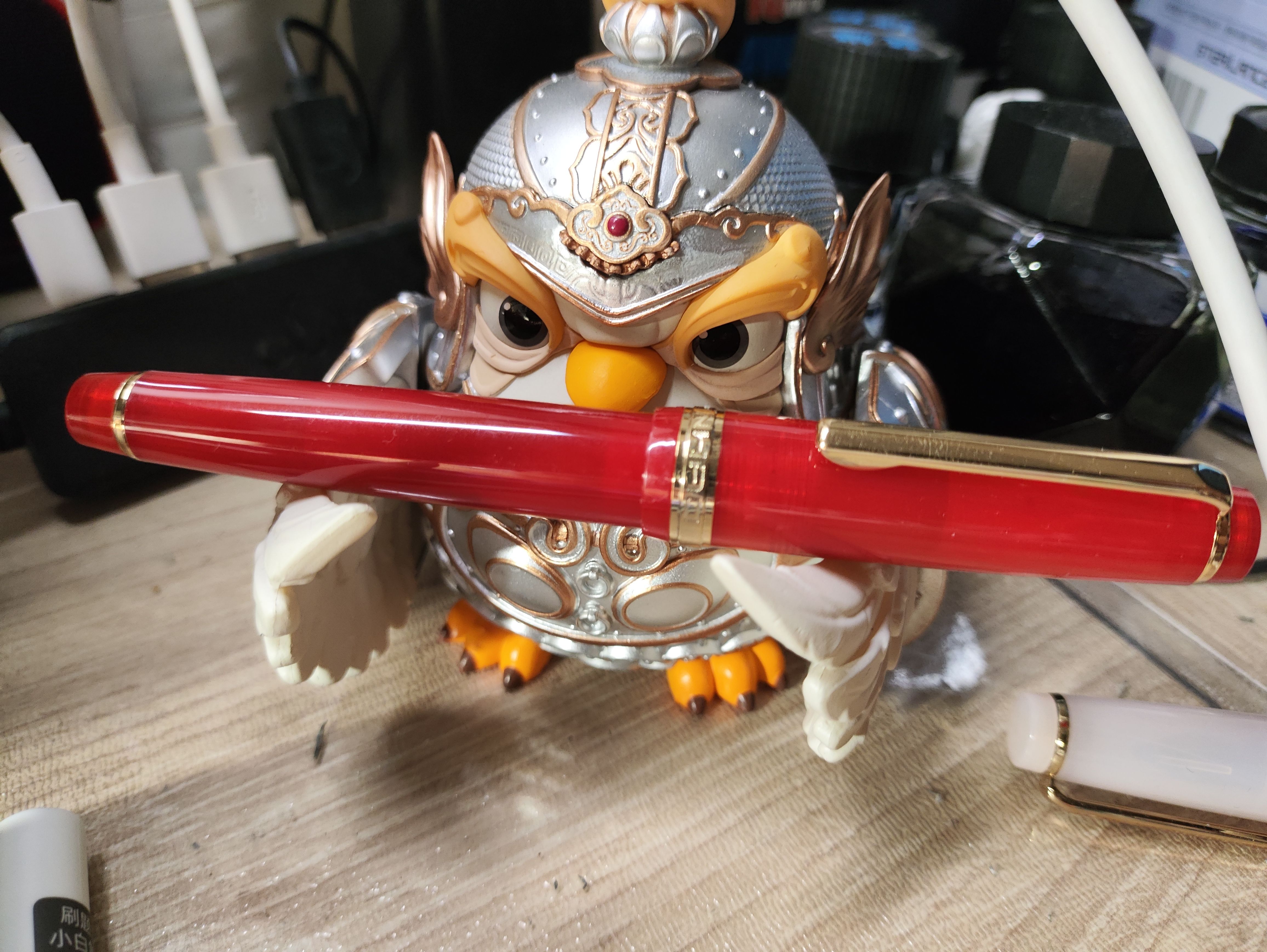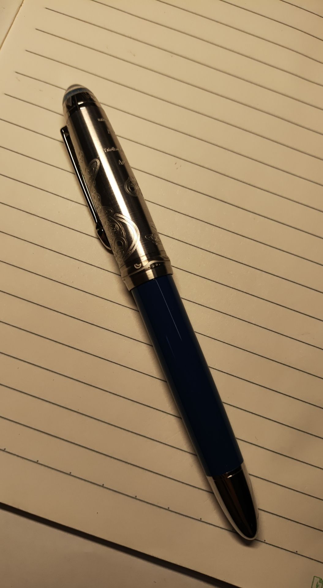 体验:没有上墨,但是很好使!笔尖顺滑不卡纸,而且软弹,很舒服的感觉。笔帽和笔握的图案设计我觉得非常好看,笔夹一段也是小火箭。美中不足的是,笔帽的透明顶不够透明,笔的中环和笔帽的连接线有点不够。