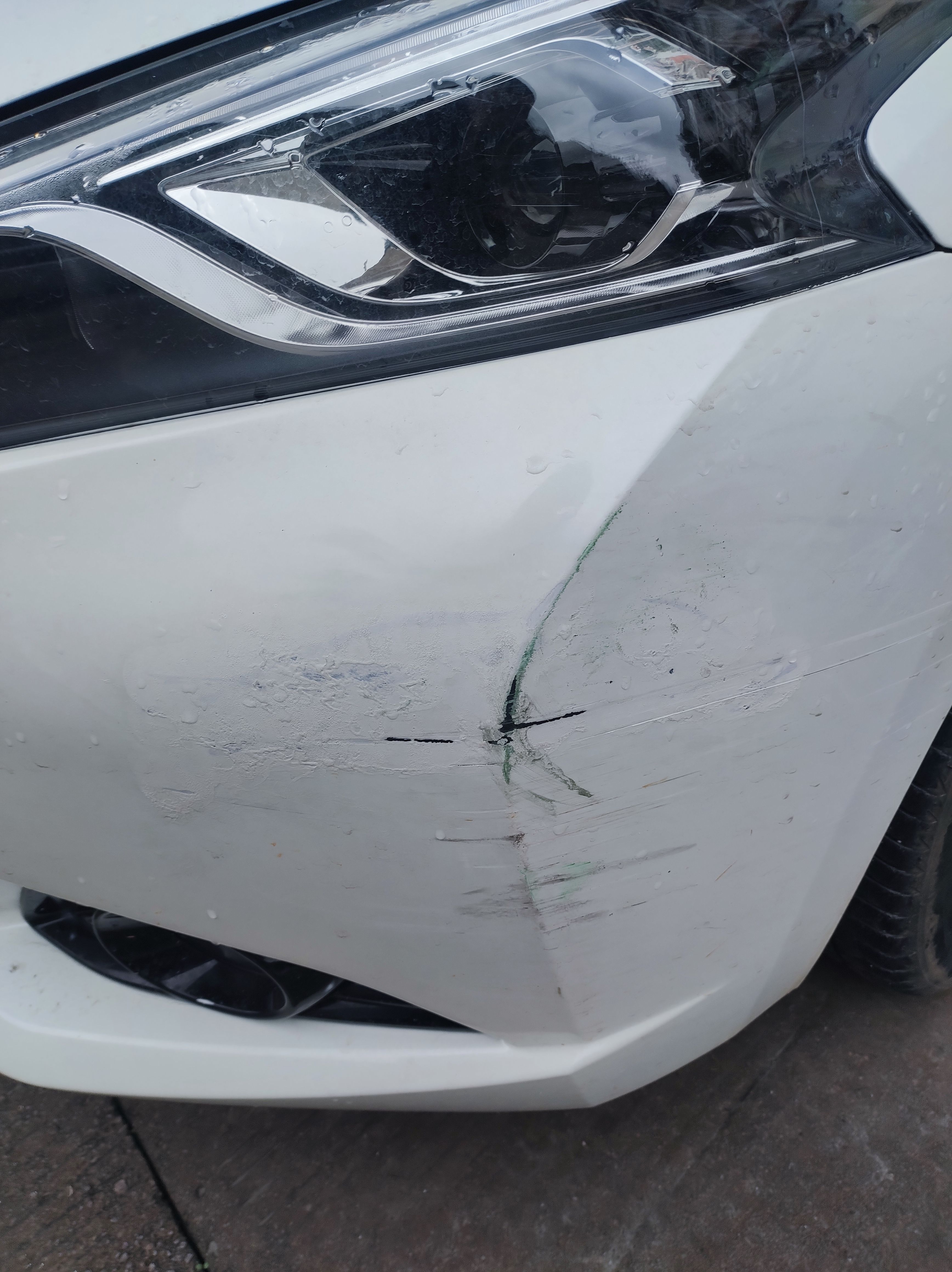 说来也巧合,早些时间po的母亲大人开车的时候就把这个位置划伤了,她也没和我说,自己买了一大块补土瞎糊在上面,所以这次我还乐呵呢,这个补土有人掏钱帮我清理了゚∀゚)σ