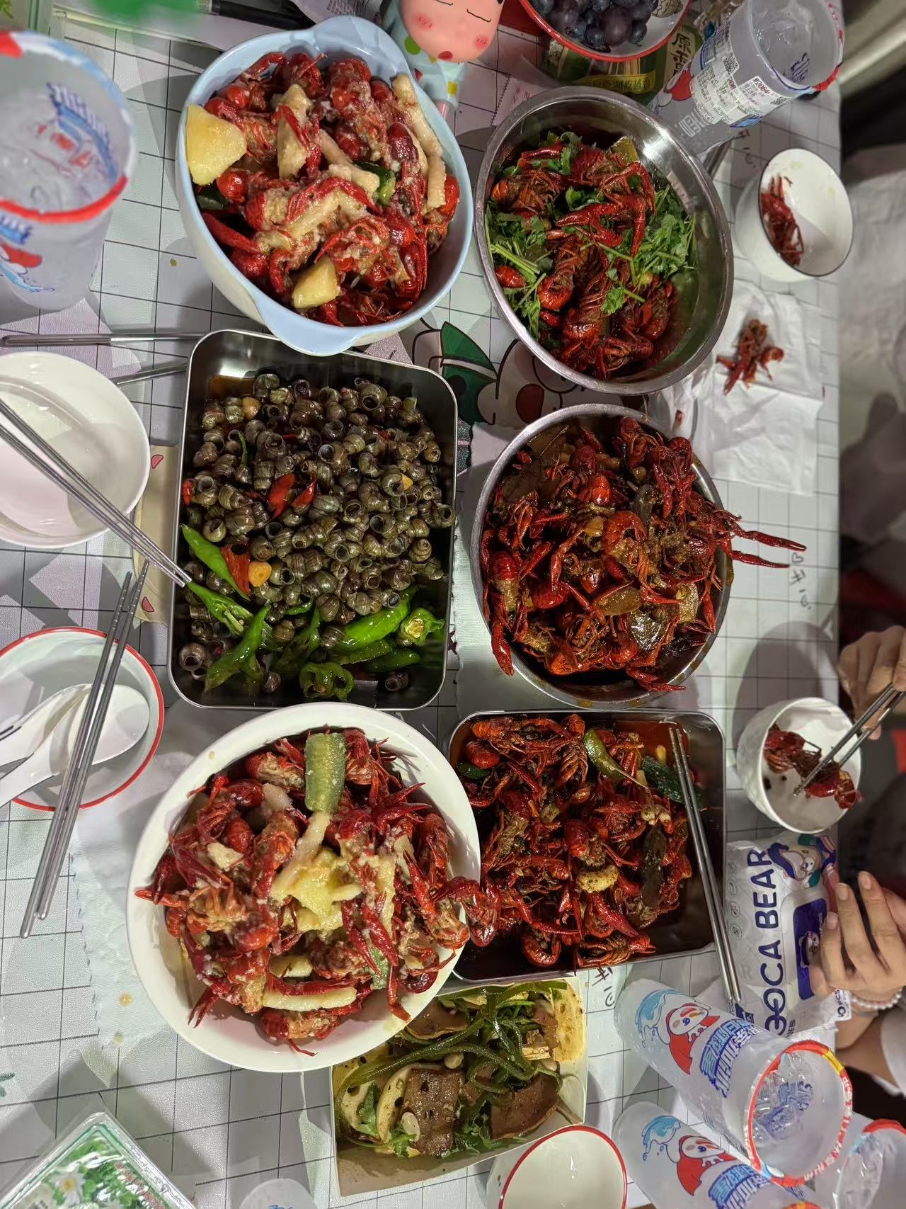 小肥跟着他俩食过好多美味,在宿舍就吃过小龙虾和烤肉很多遍火锅(σ゚∀゚)σ就决定是你了,小龙虾!五个人下早班气势汹汹的把菜场所有的小龙虾都包了(