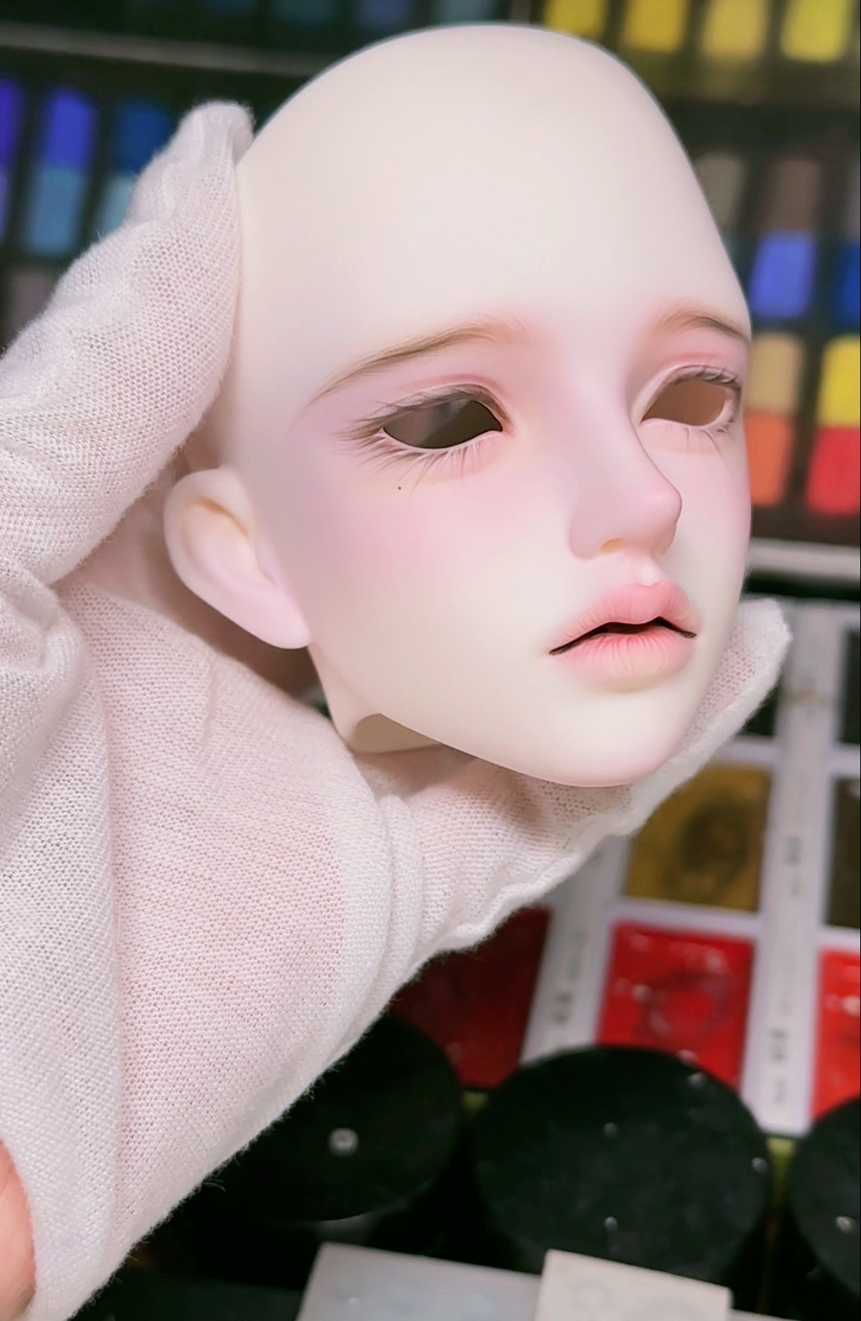 有点紧张啊(つд⊂) 我感觉这个jo的眼皮和卧蚕结构都画得改了点……看妆图给我感觉很美,非常美,神来之笔来着,但实物也不知道什么样