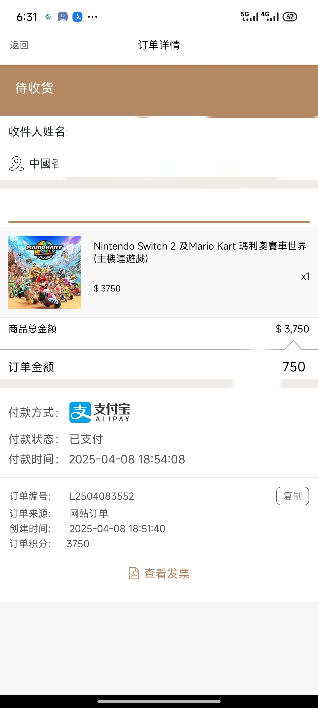 po的也显示待收货了( ゚∀゚)