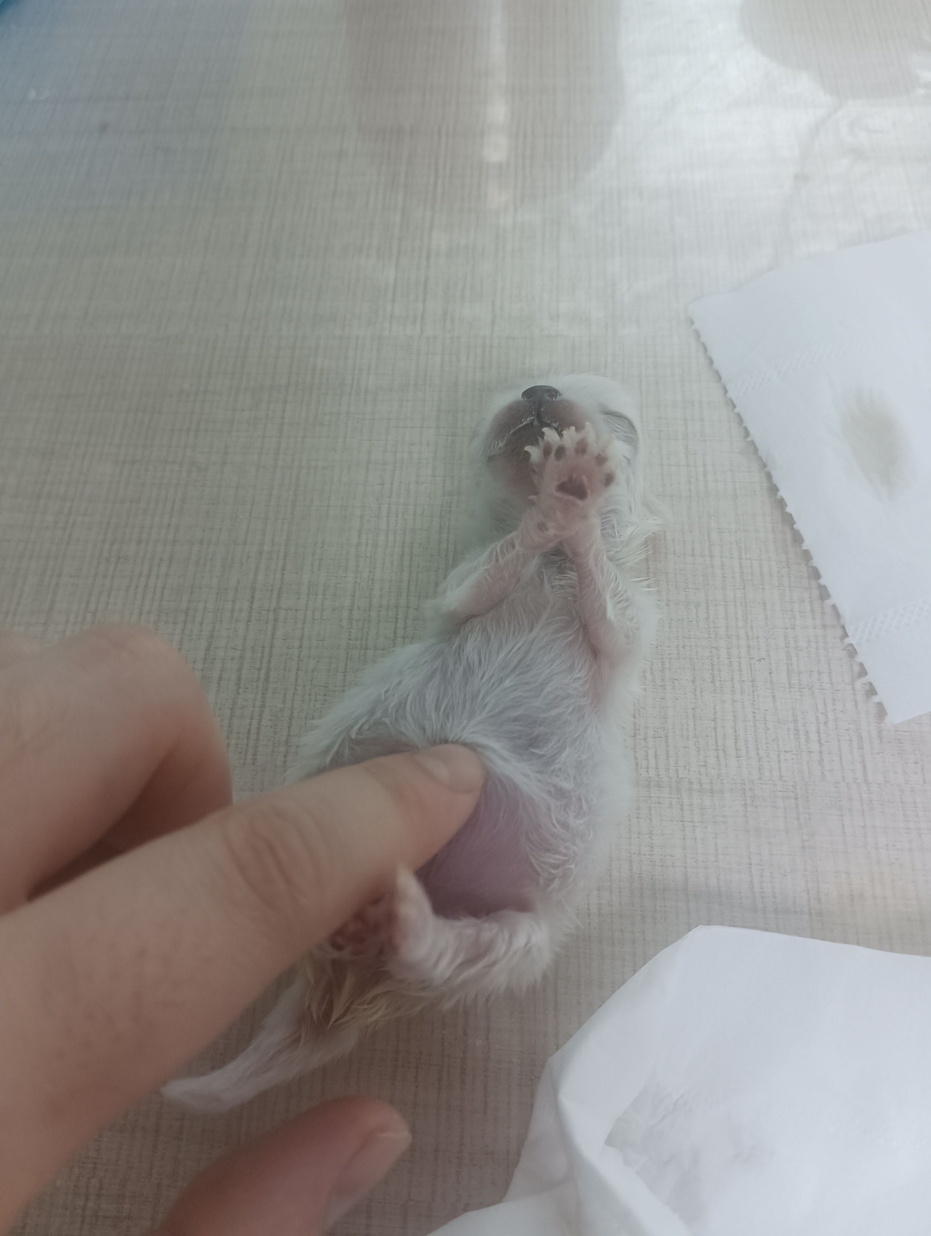 思来想去还是开个串记录一下吧,前几天有个剖腹产的马尔济斯,其中一个发育不好肠子还在体外。原主不要了,我们给它缝回去试着自己喂一喂。总之小奶狗喂养串堂堂连载(ゝ∀・)