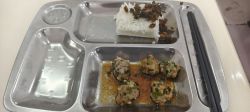 中餐玉米肉饼,水煮青菜