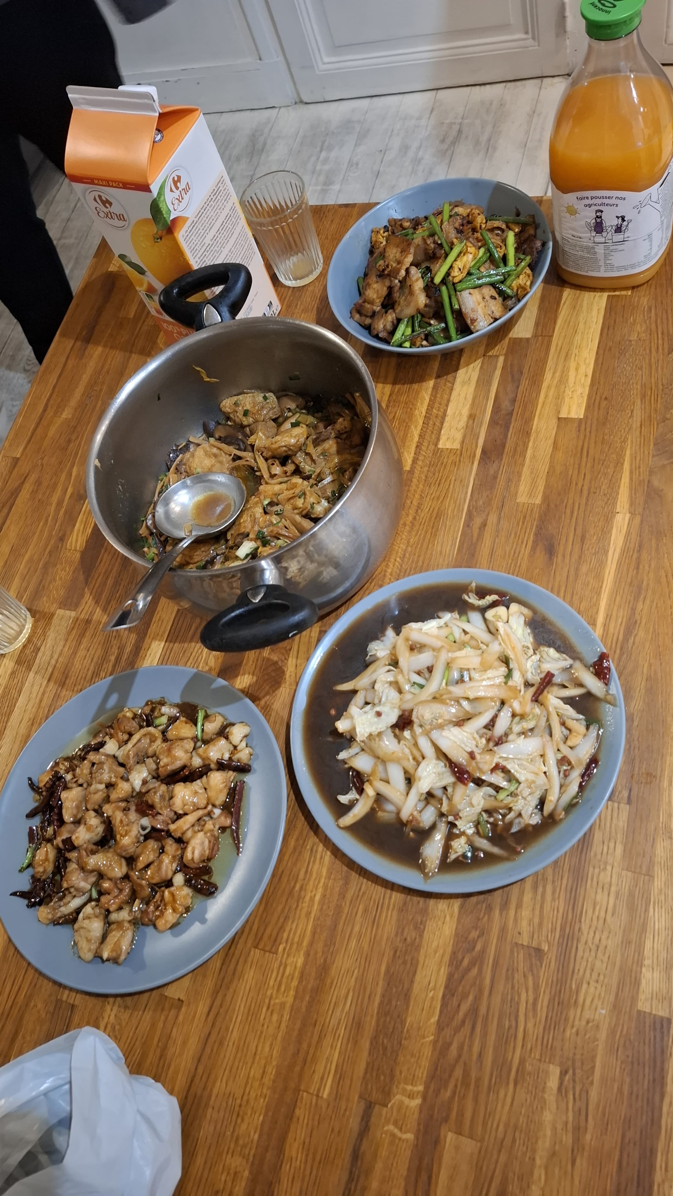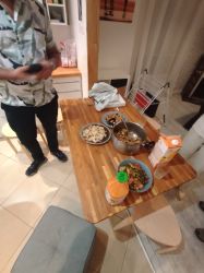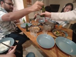 我作为host邀请了两个外国同学和中国同学,总共七个人在我家聚餐庆祝除夕,我做了黄花菜香菇炖鸡和农家一碗香,Darren做了红酒炖牛肉,宫保鸡丁和酸辣白菜。(`ε´ )我觉得我做的农家一碗香是最好吃的,底下的蒜,辣椒和花椒都被印度老哥拌饭吃干净了。