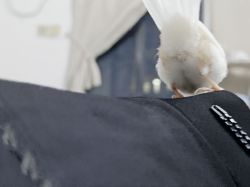 熟悉了浴室就开始熟悉笼子了,一开始很害怕,我就把笼门来着让它自由进出,食盆和水碗都放笼子里,它饿了就进笼子吃,发现笼子没有危害后就开始荡秋千玩了|∀` )挺聪明的嘛!