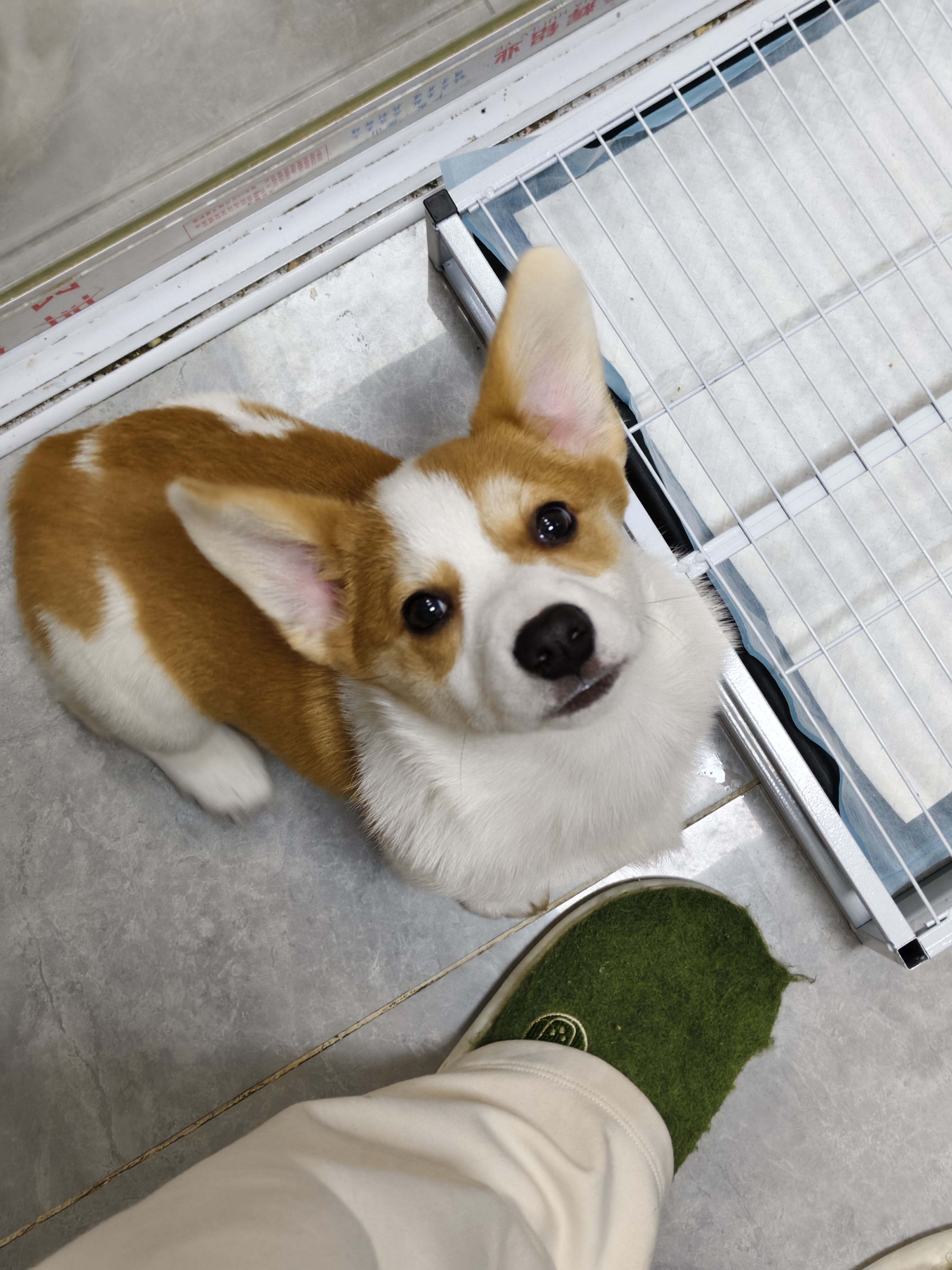 进门后,一个笼子里四只小柯基齐刷刷看着我,一打开笼子,两只柯基跟小恶魔一样一边汪汪叫一边从我的脚准备进行攀爬运动,还有一个没憋住尿,直接在我旁边嘘嘘了起来!