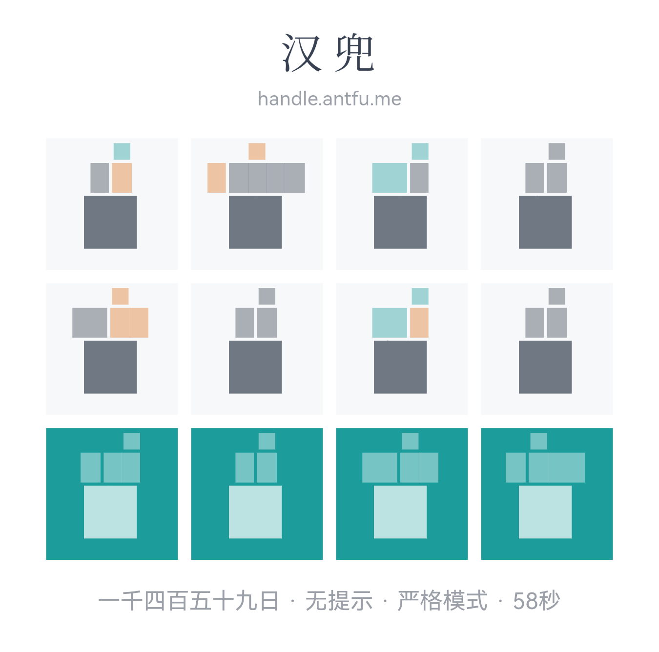 汉兜(https://handle.antfu.me/)是一个通过声母、韵母和声调猜成语的游戏。