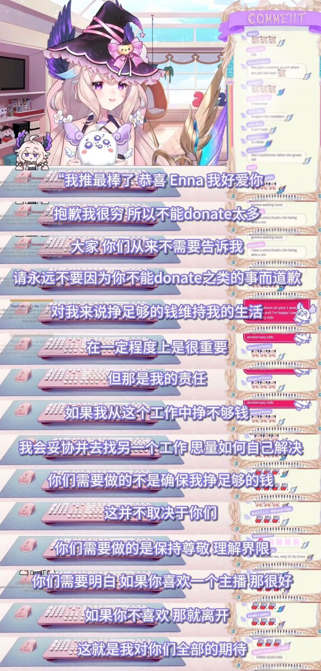 在d一个小v,个人势,她做的太认真了,不愿意去蹭流量热度也不愿意抱老头大腿,自己花了好多钱和时间精力在直播上,不肯放下尊严但又没有那种很脱颖而出的特点,可能就皮套很好看精致,中之人情感丰富吧。