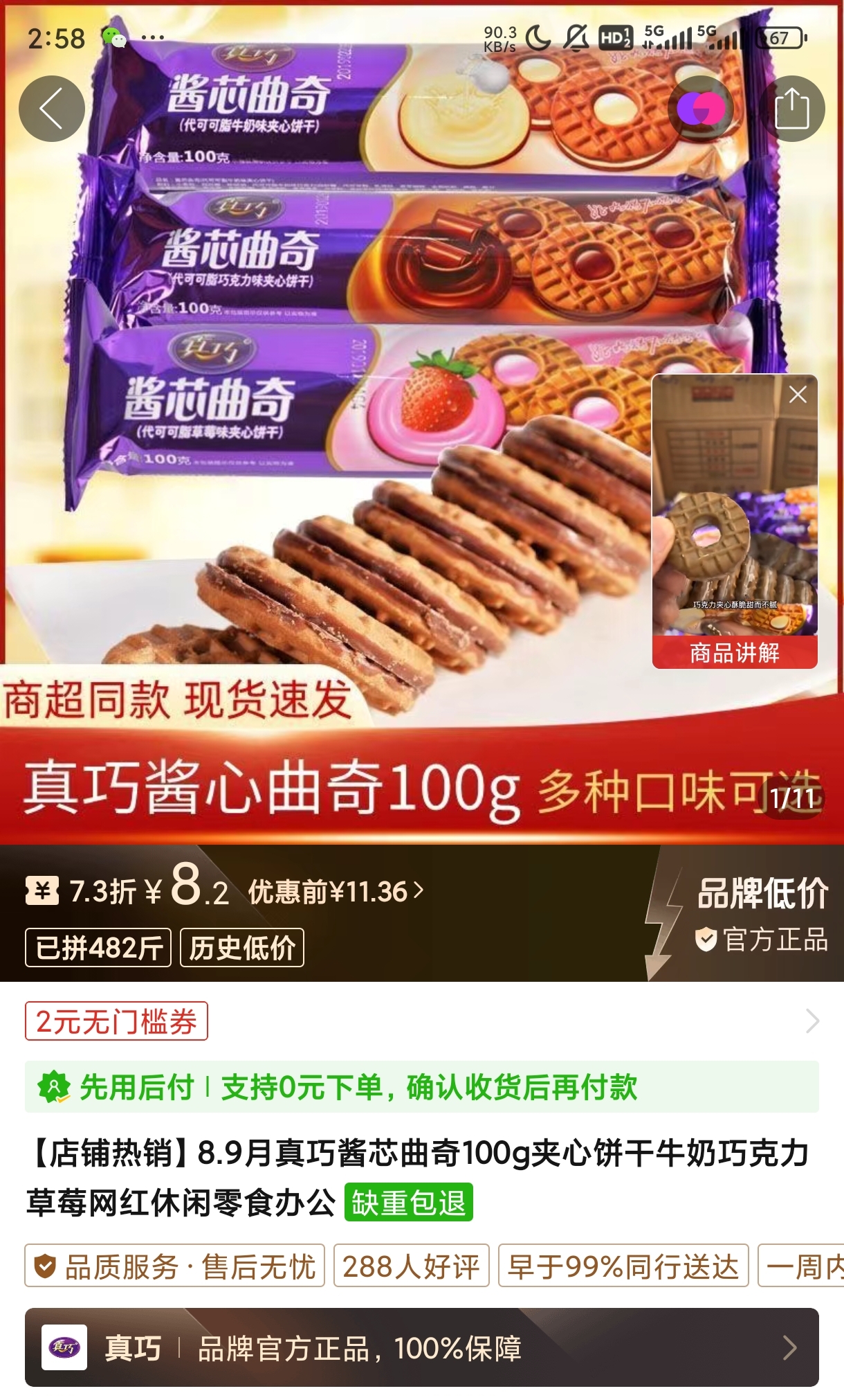 今天到的货,吃了酱芯巧克力味的,准备进嘴的时候会闻到有过年喜糖的味道,搭配牛奶吃还可以