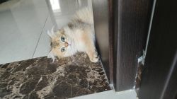 刚来不亲人别担心,给它放猫粮铲屎就行,时间久了就不怕你了