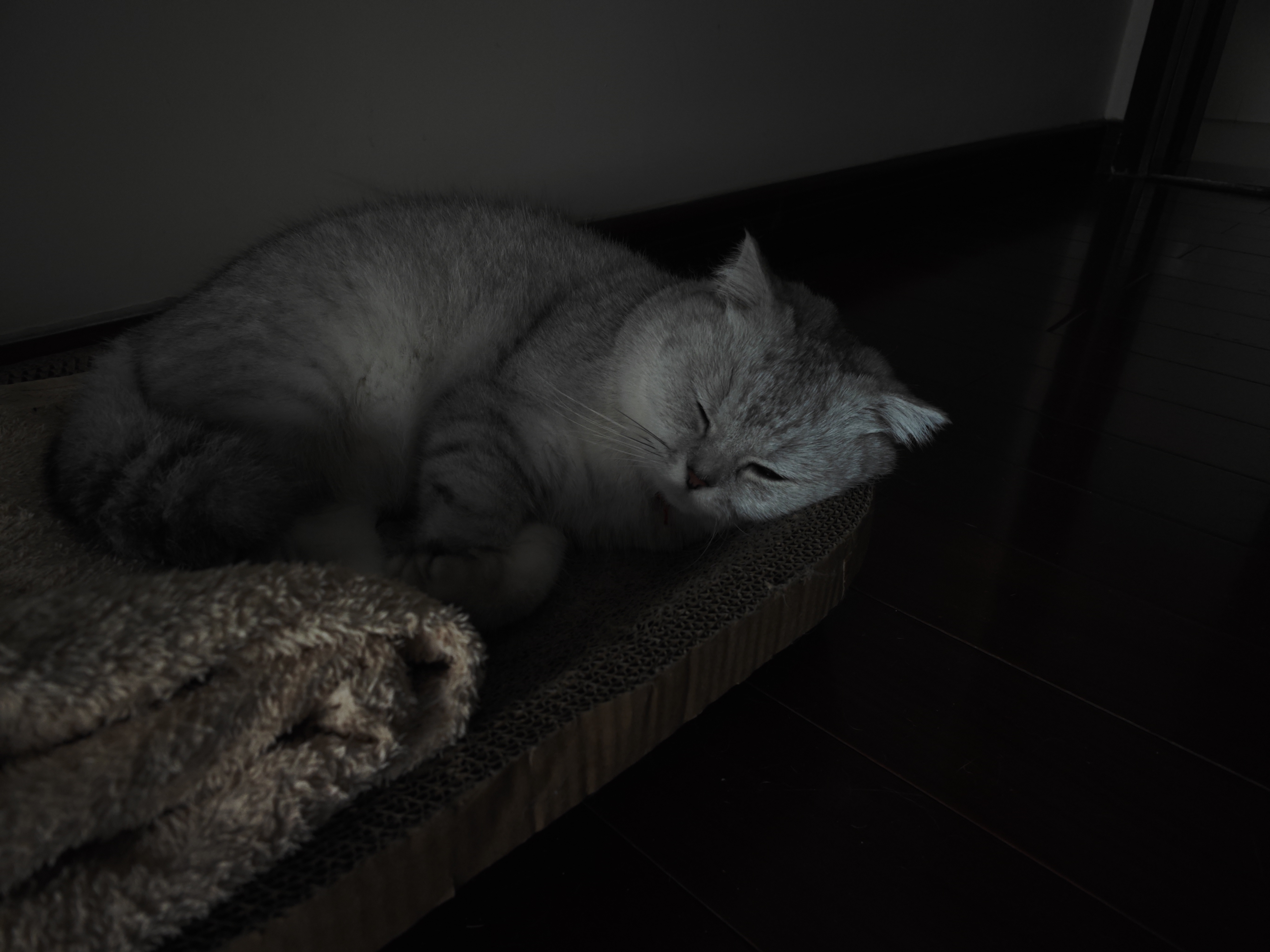 咪卡现在是一只有一点点坏的小猫,她用不吃饭抗争我往罐头里加水的行为。今天早上抓了只老鼠回来,给我吓死了,中午上我床我用酒精给她的爪爪消了毒,不知道有没有用。现在她在客厅躺着不吃罐头。。。