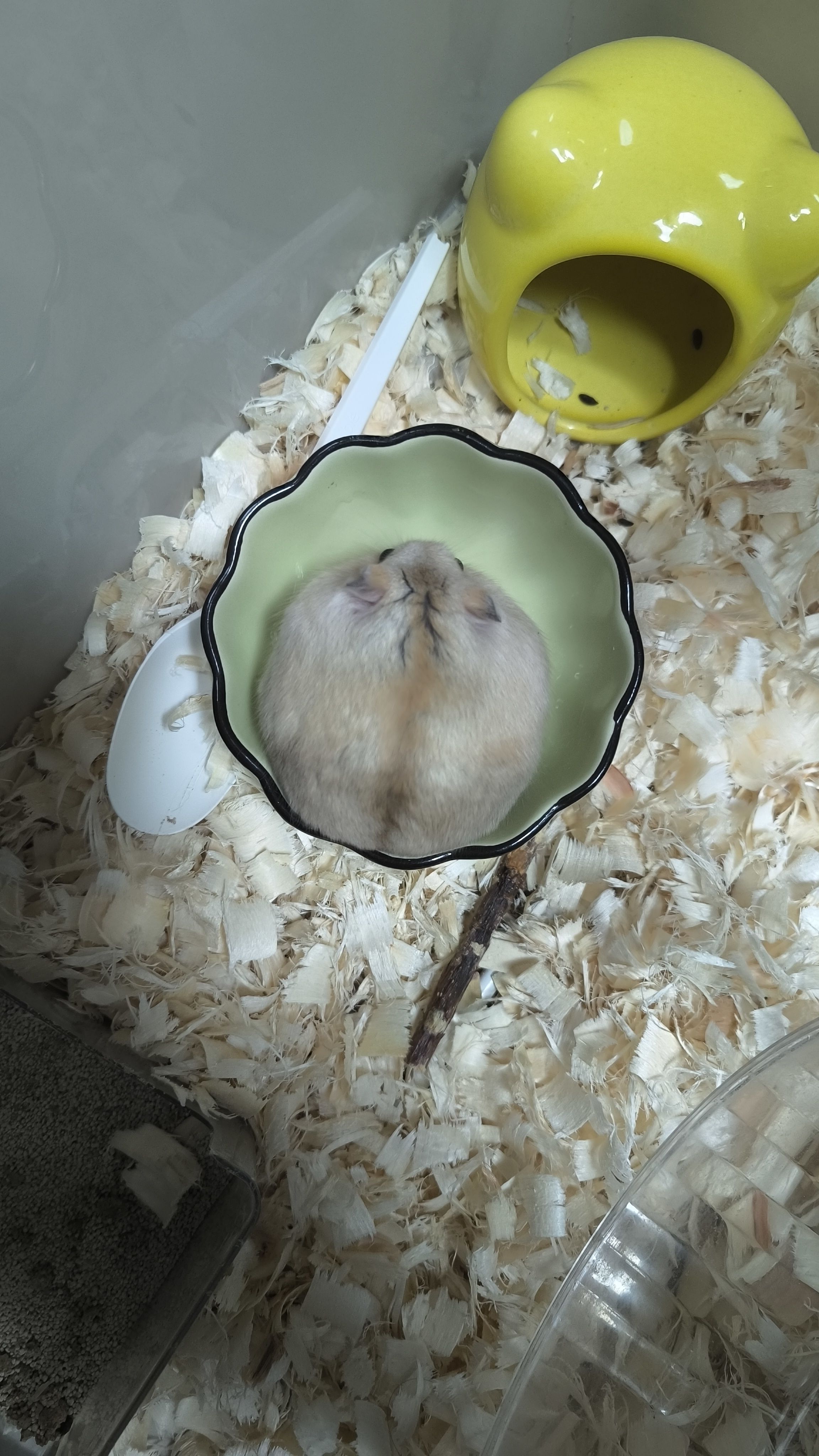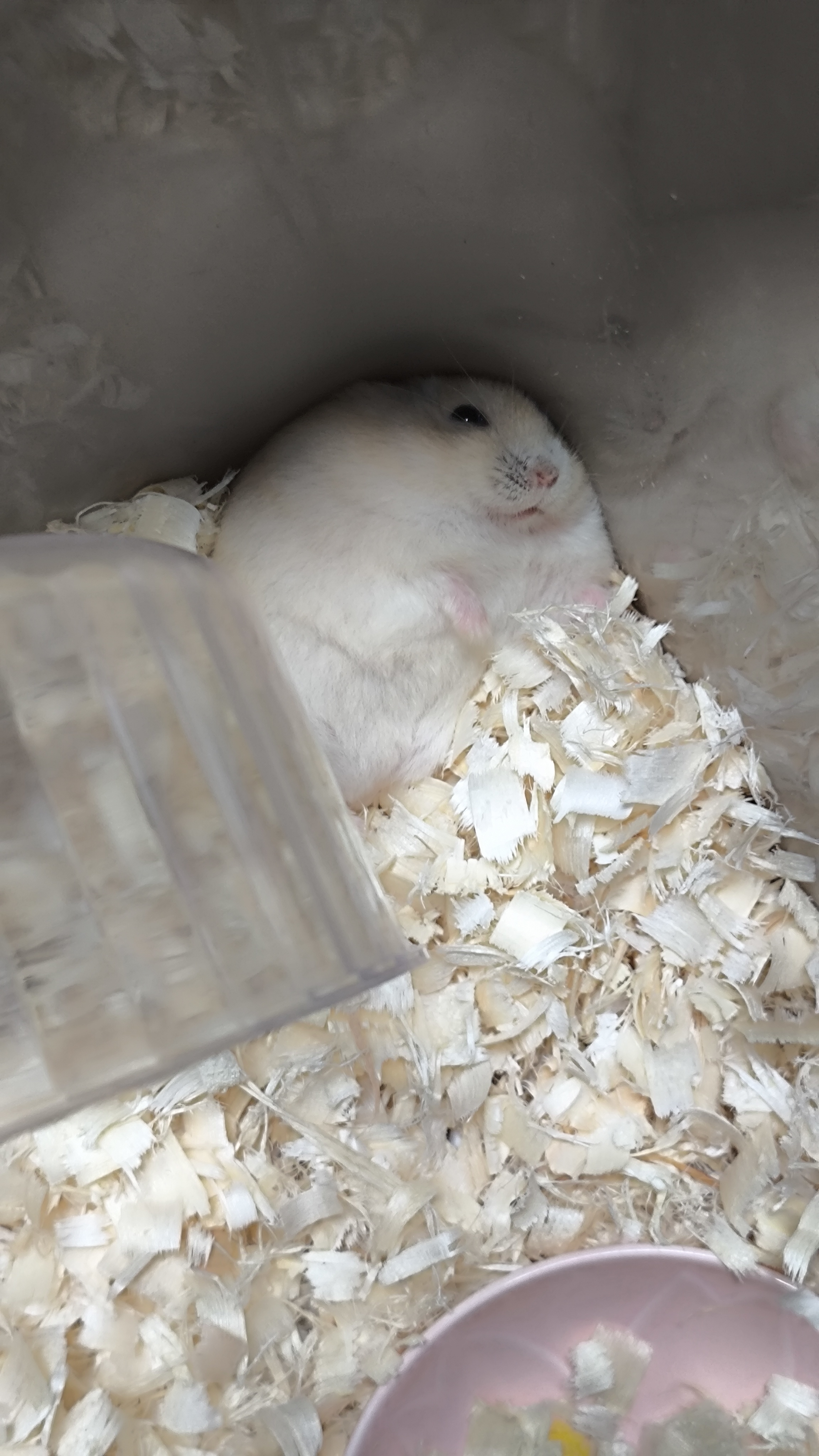 今天刚领养的仓鼠,我给它取名二十块钱,因为去接它的路上因为没戴头盔被交警罚了二十块钱( ;´д`)