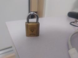 如图,这个锁头就这样莫名其妙地被肥带回了寝室