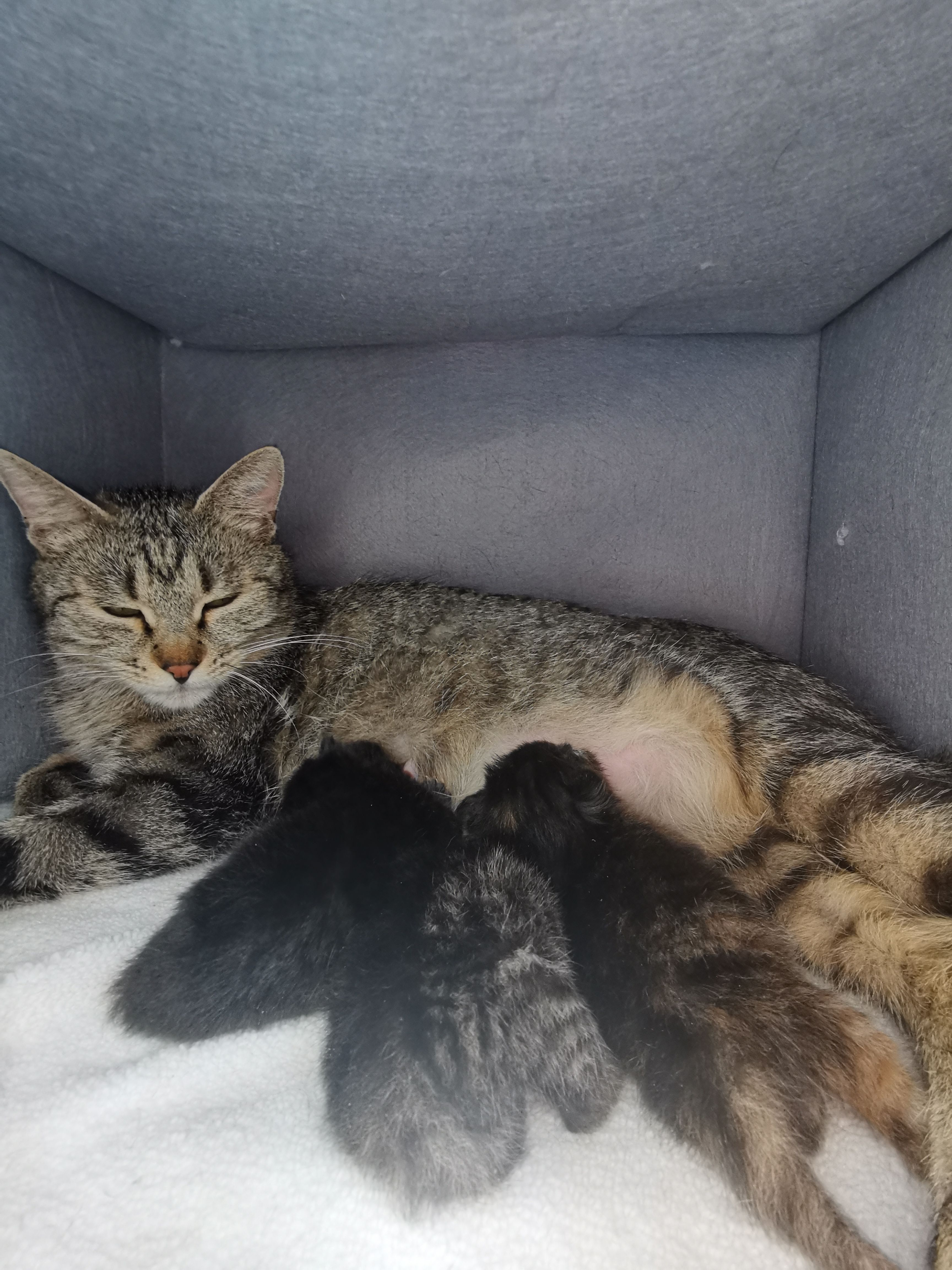 一共生了三只一只黑的一只狸花一只玳瑁