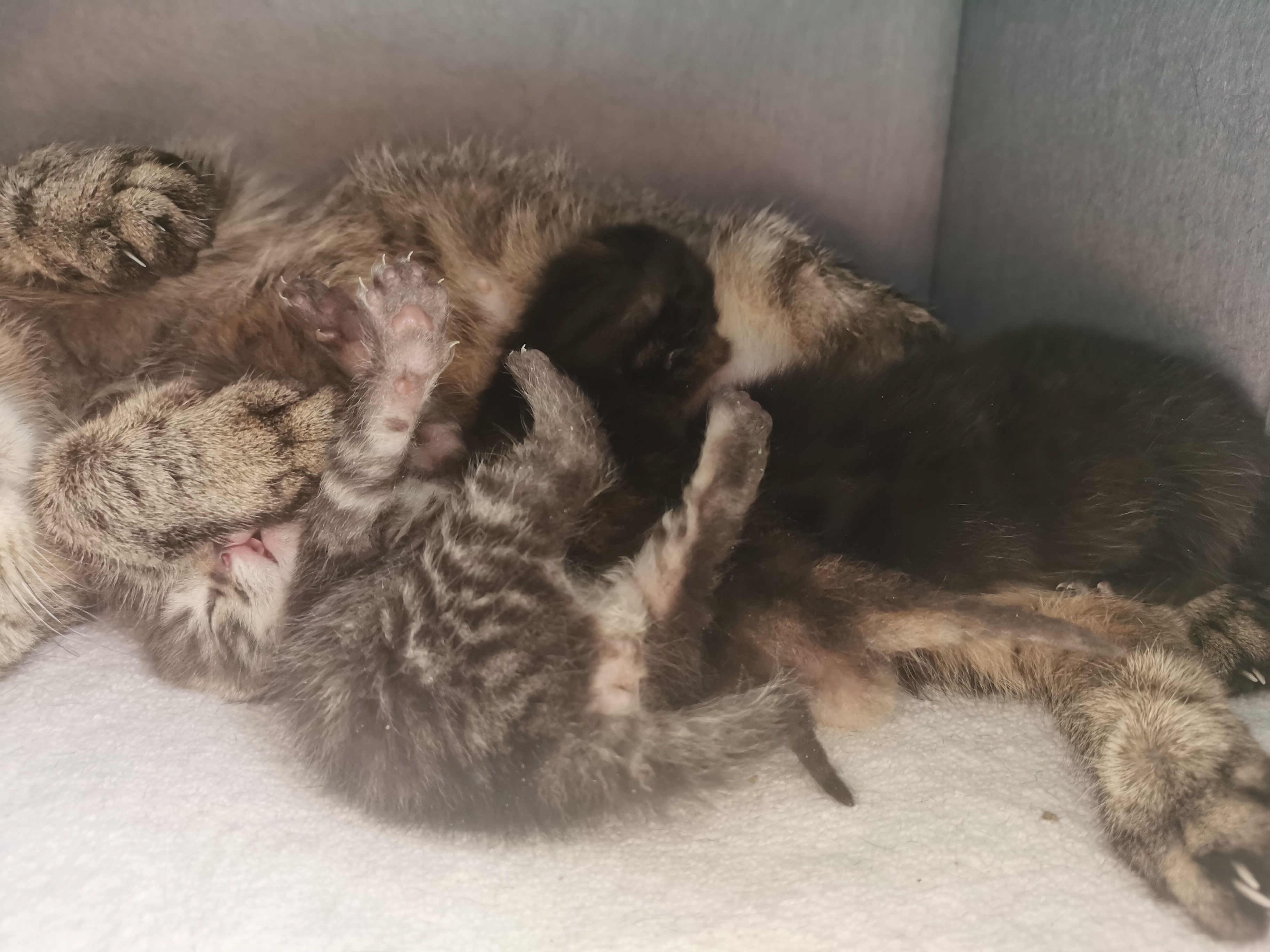 刚刚小肥试图拿捏狸花宝,狸花宝尖叫,然后剩下两只小猫一同尖叫,一时间听取唧哇声一片