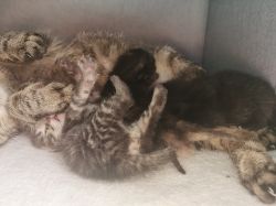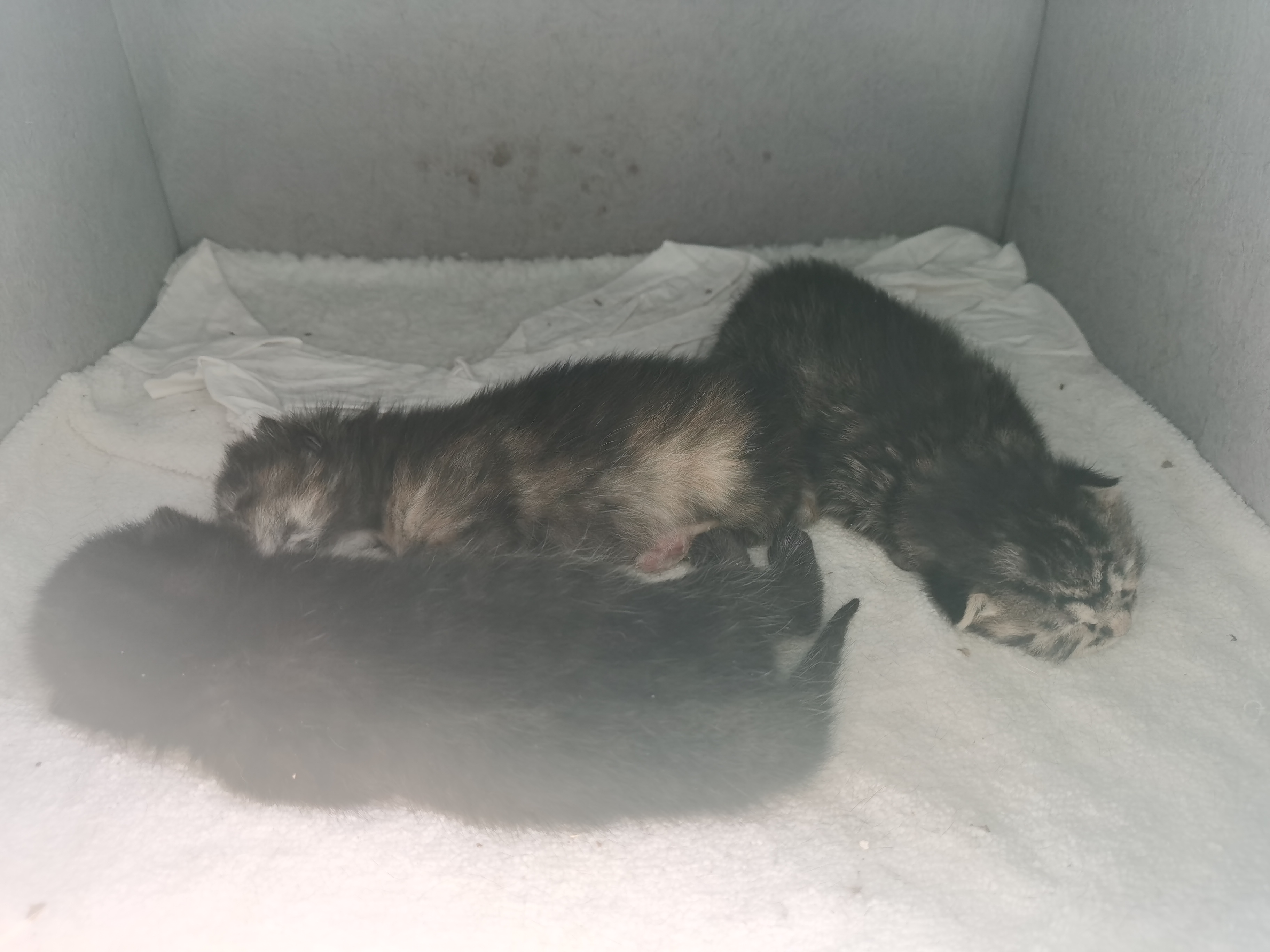 黑宝(♂):其实是黑狸花,三只里的老大,已经可以睁眼了!但是不知道他是不是真能看见东西。每天绝赞和玳瑁宝抢食中,叫声是嗯嗯嗯。