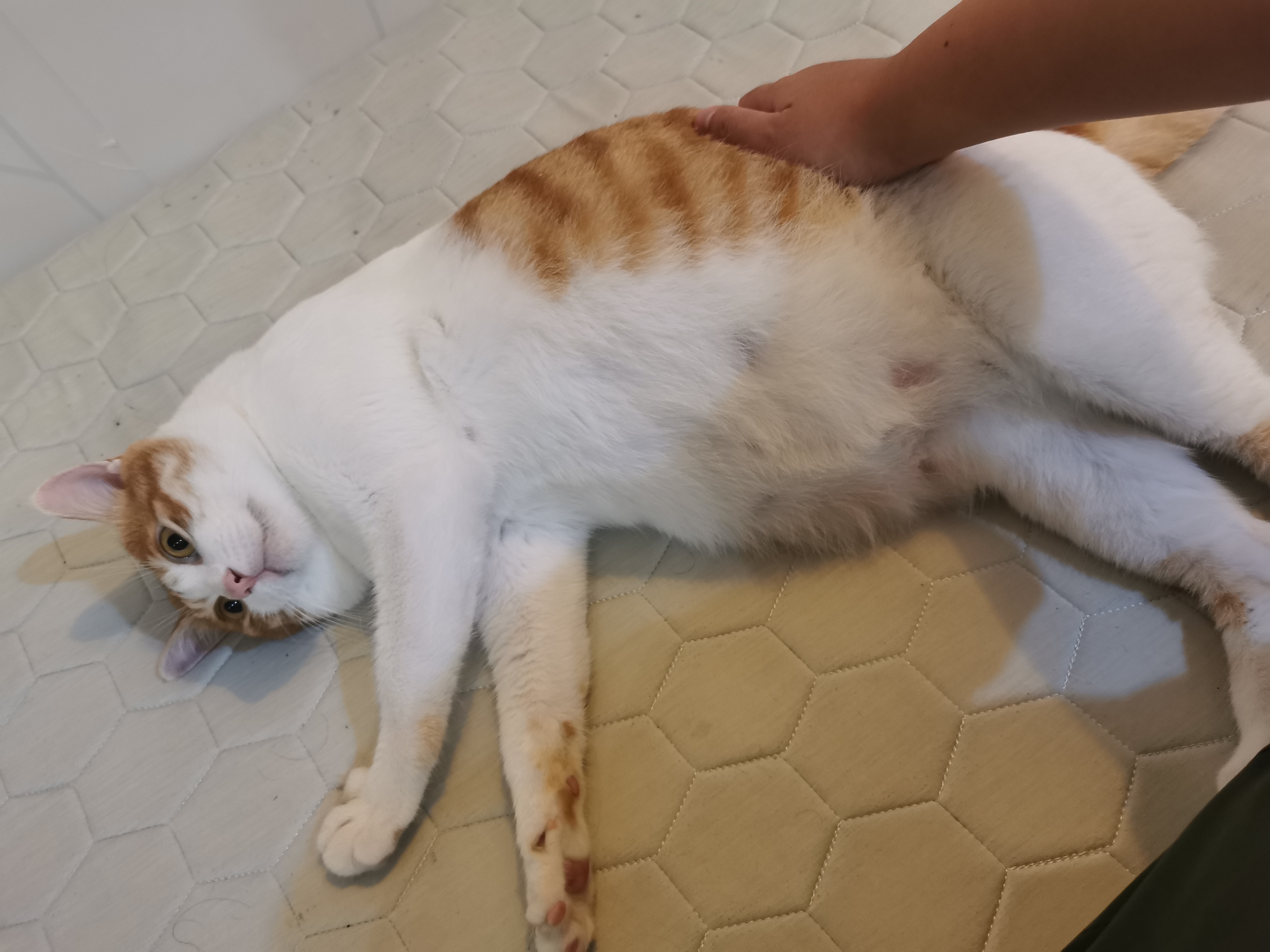 趁撸猫的时候摸了下,左后腿右前腿和尾巴根都明显的躲避,发作还挺严重的。