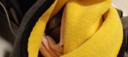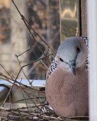 今天小肥遛狗的时候狗狗发现了一只珠颈斑鸠,估计是被野猫咬了,肚子一直在流血,翅膀也折了一只,被小肥带回家上好药喂了些糖水。明天救助站来人带走。