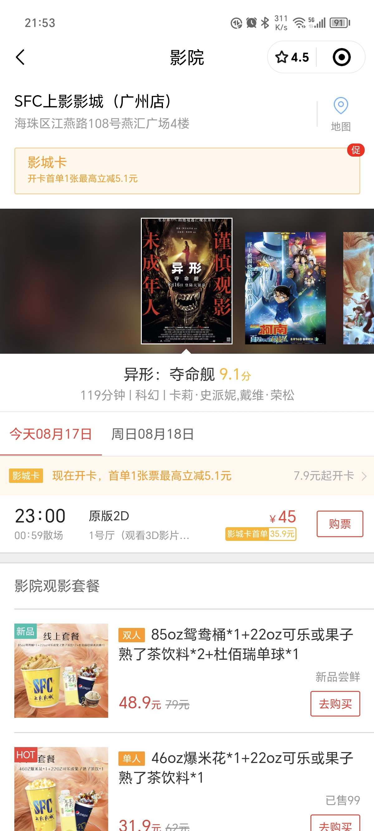 夺命舰的电影票还有异形大哥的签名欸( ゚∀。)