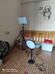 布光的话,有大空间就先拿60瓦常亮灯一左一右配合两个柔光罩,没有大空间直接拿个柔光灯环也能凑合
