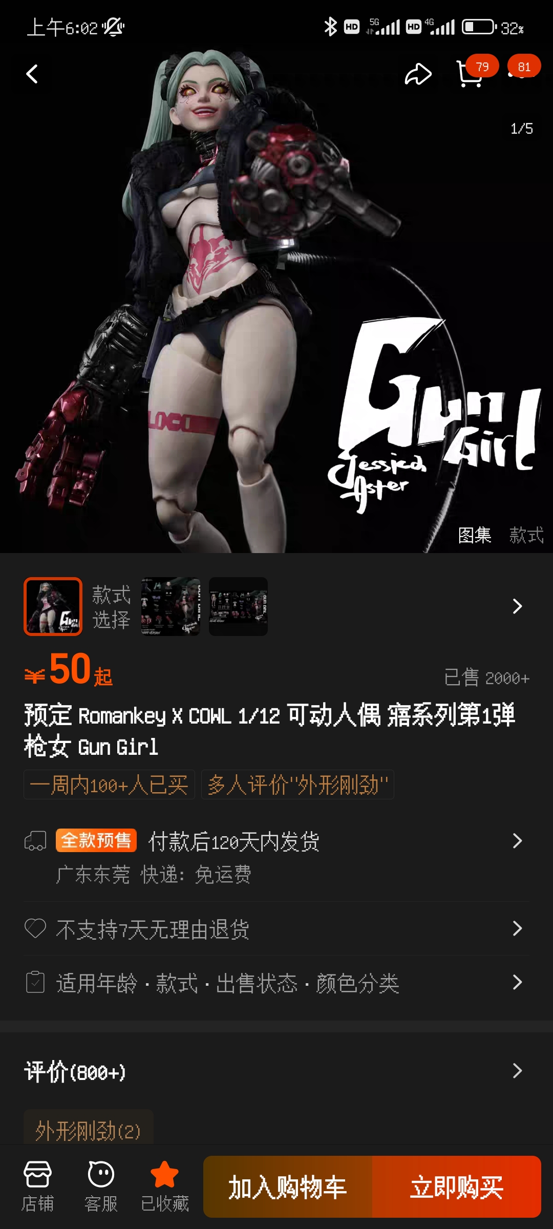 之前买过8分可动战双露西亚,很多人反应磕碰掉漆之类的,关节玩久了也会松