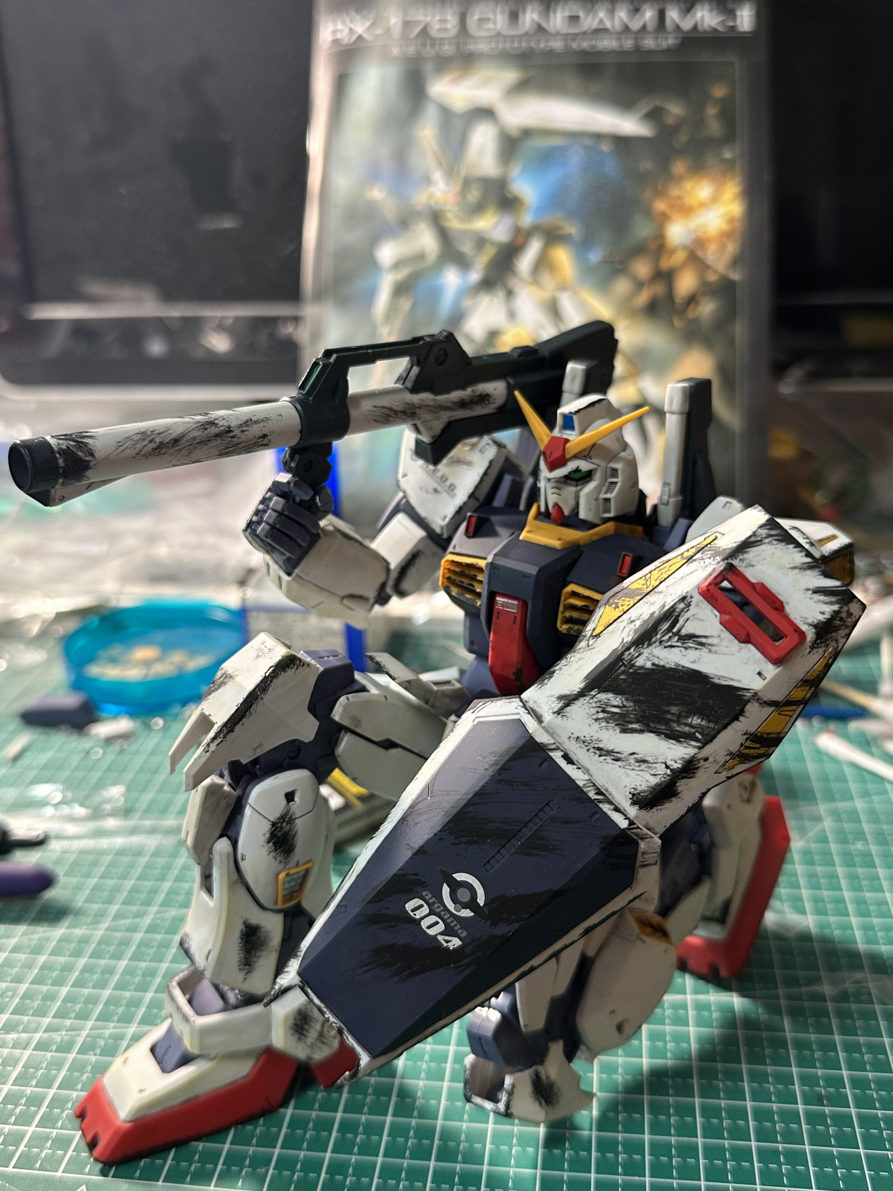 不过如果是真实配色元祖的话,黑色那些不是油,是阴影和战损,制作手法每个人都不一样,我常用的是涂马克笔再用棉签擦