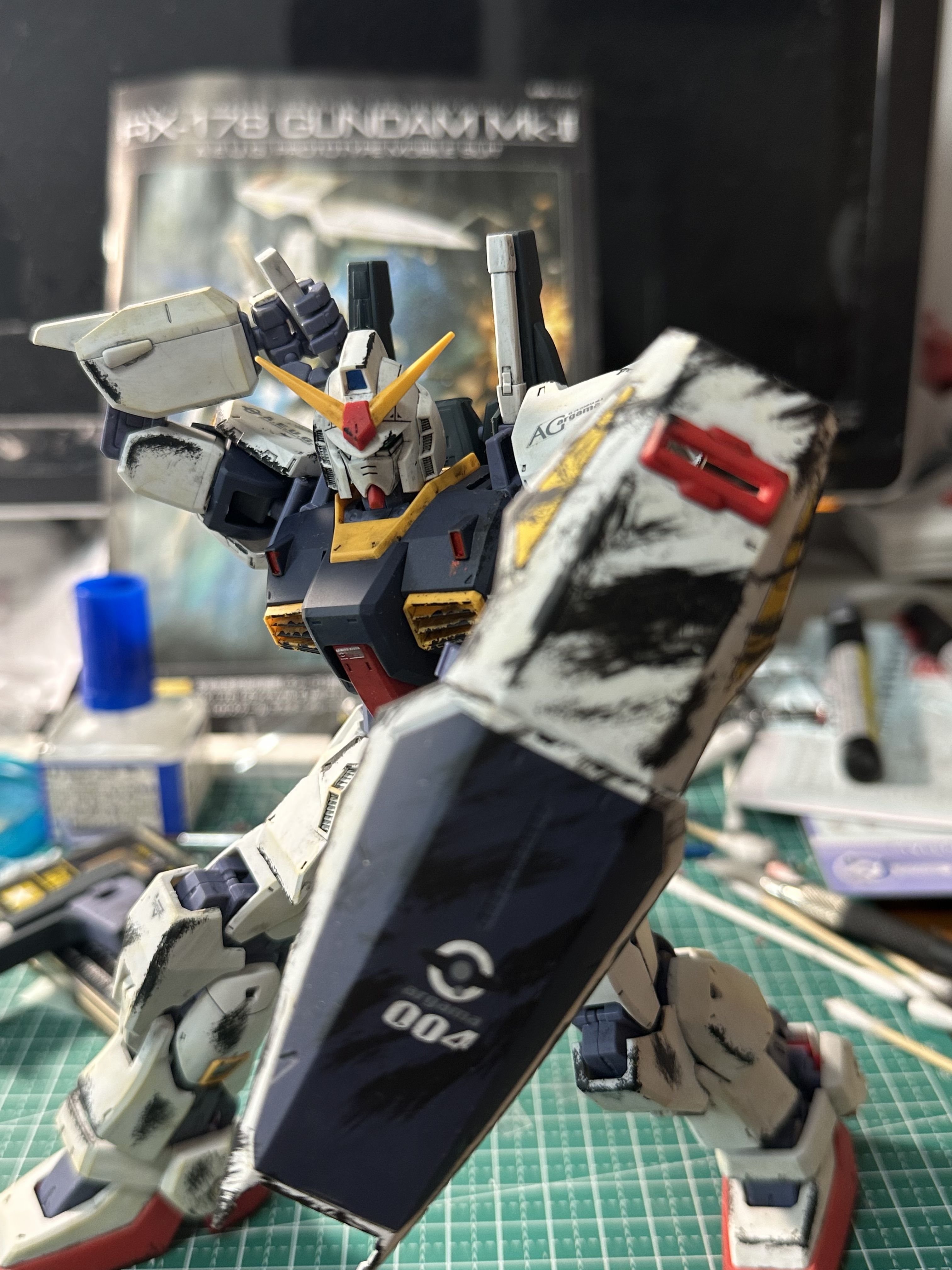 单说黑色那部分的话,其实就是旧化+大面积阴影,旧化我没做过,大面积阴影的话要调暗色的漆,喷好之后再喷一层半消光就行了,总之能做到封绘那种效果都是巨佬( ゚∀。)