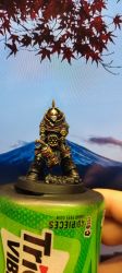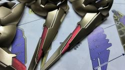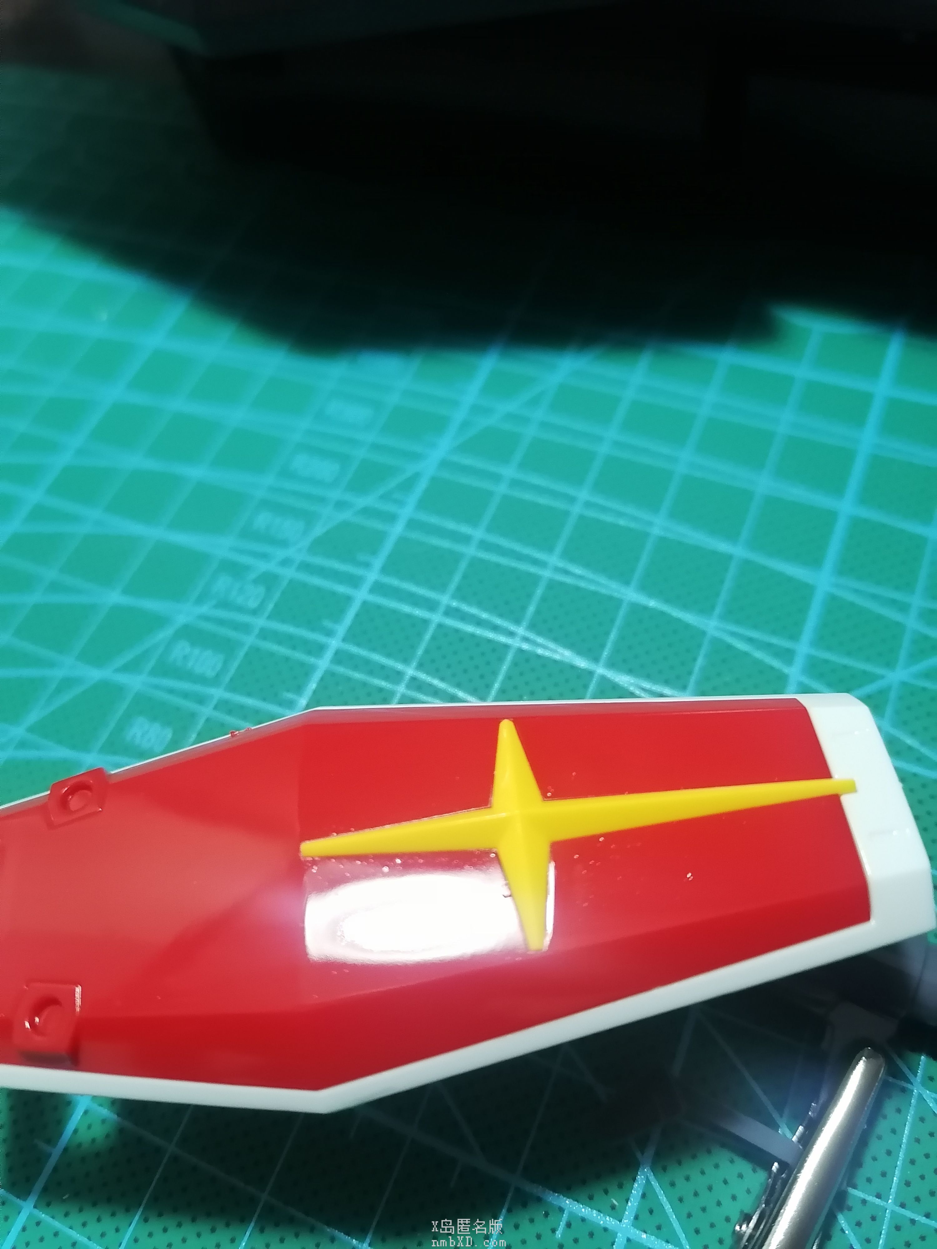 新水性喷罐我喷的大概15cm远吧。试过拿喷罐左右不停的来回喷 发现变成这样,已经有光泽的质感了。貌似是灰尘没扫干净的原因?看着还有几个芝麻点。仅喷了个盾牌就感觉用掉了好多的漆,貌似明白为什么都说喷罐比喷笔还要烧钱了(´゚Д゚`)