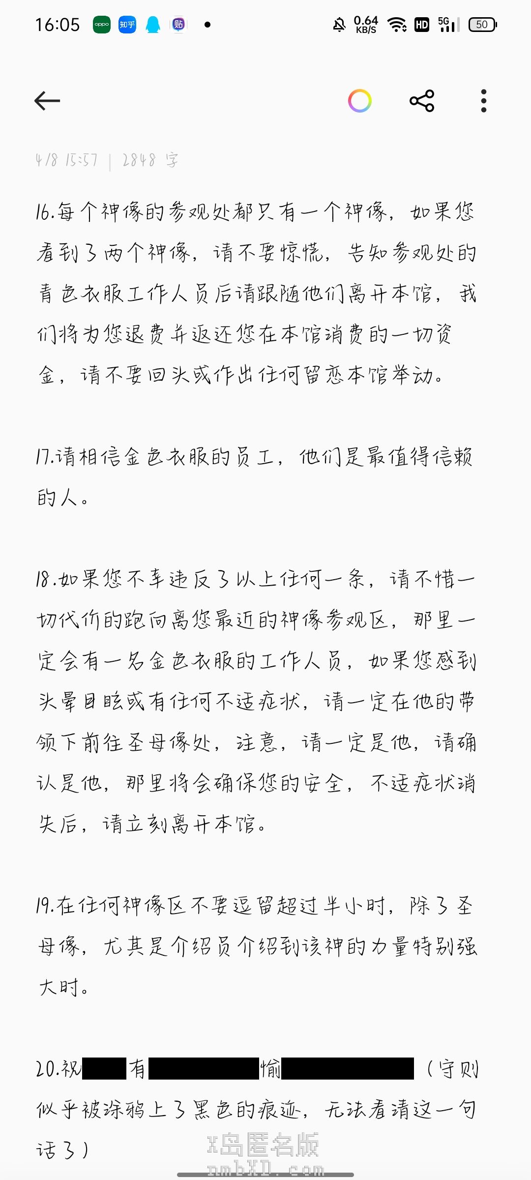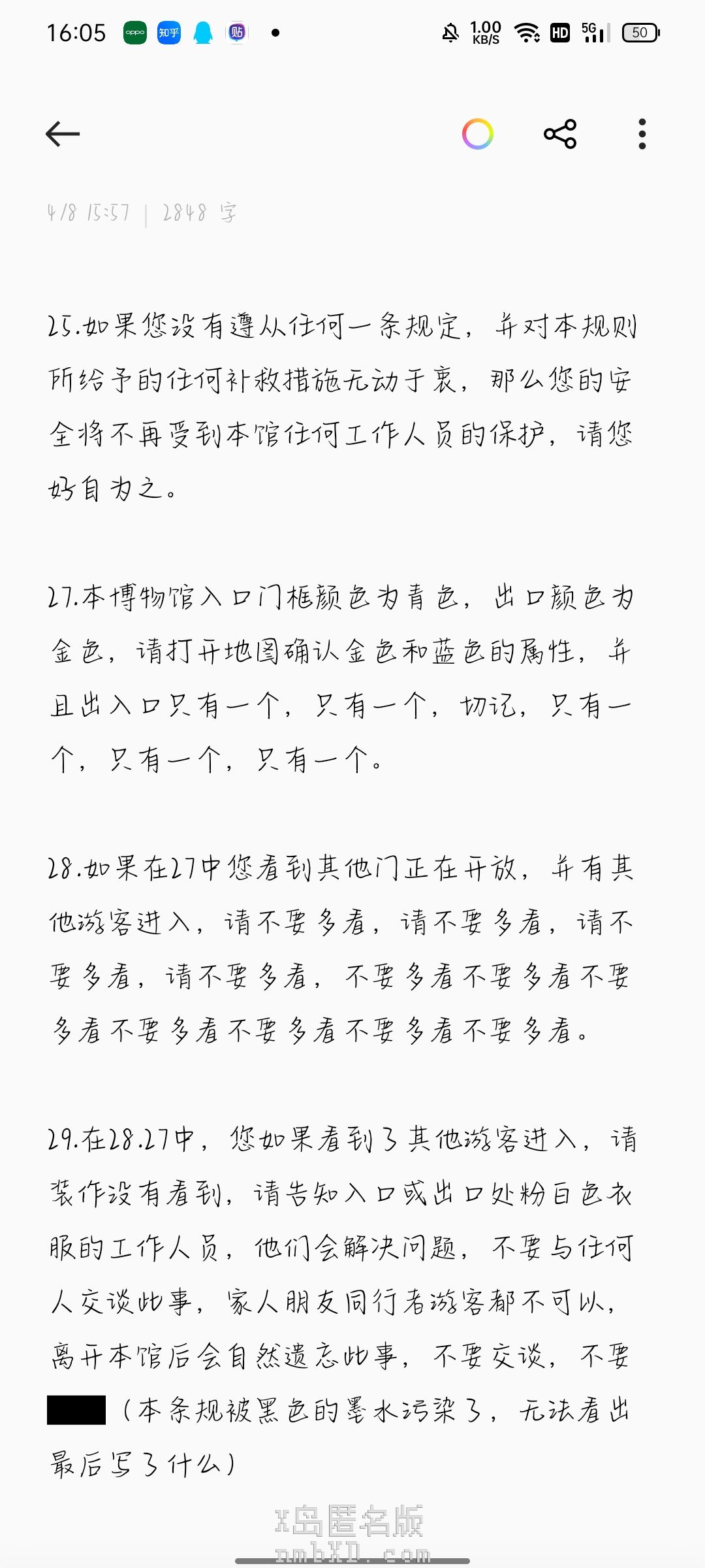请勿撕毁或污损本须知。我们没有多余的预算来印制和放置新的副本。你眼前的这个须知,是依靠外勤研究员们的前赴后继与不断牺牲才得以维系的。