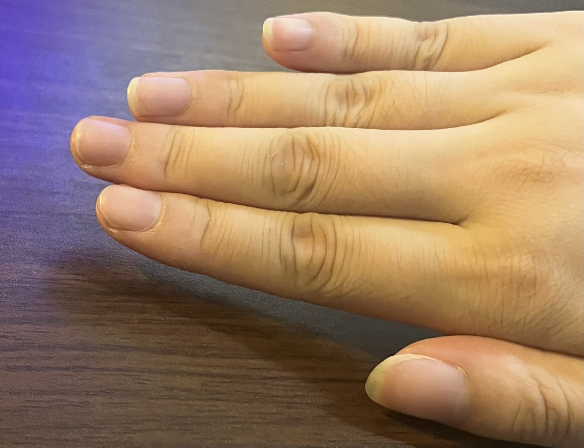 我大概剪到图上这样就不会刮了,可以做一个参考。如果还是刮可以适当改变一下拨弦的角度。食指中指力度不同很正常啦,多找一下两个指头需要什么力度才能听起来差不多再练练就好了。