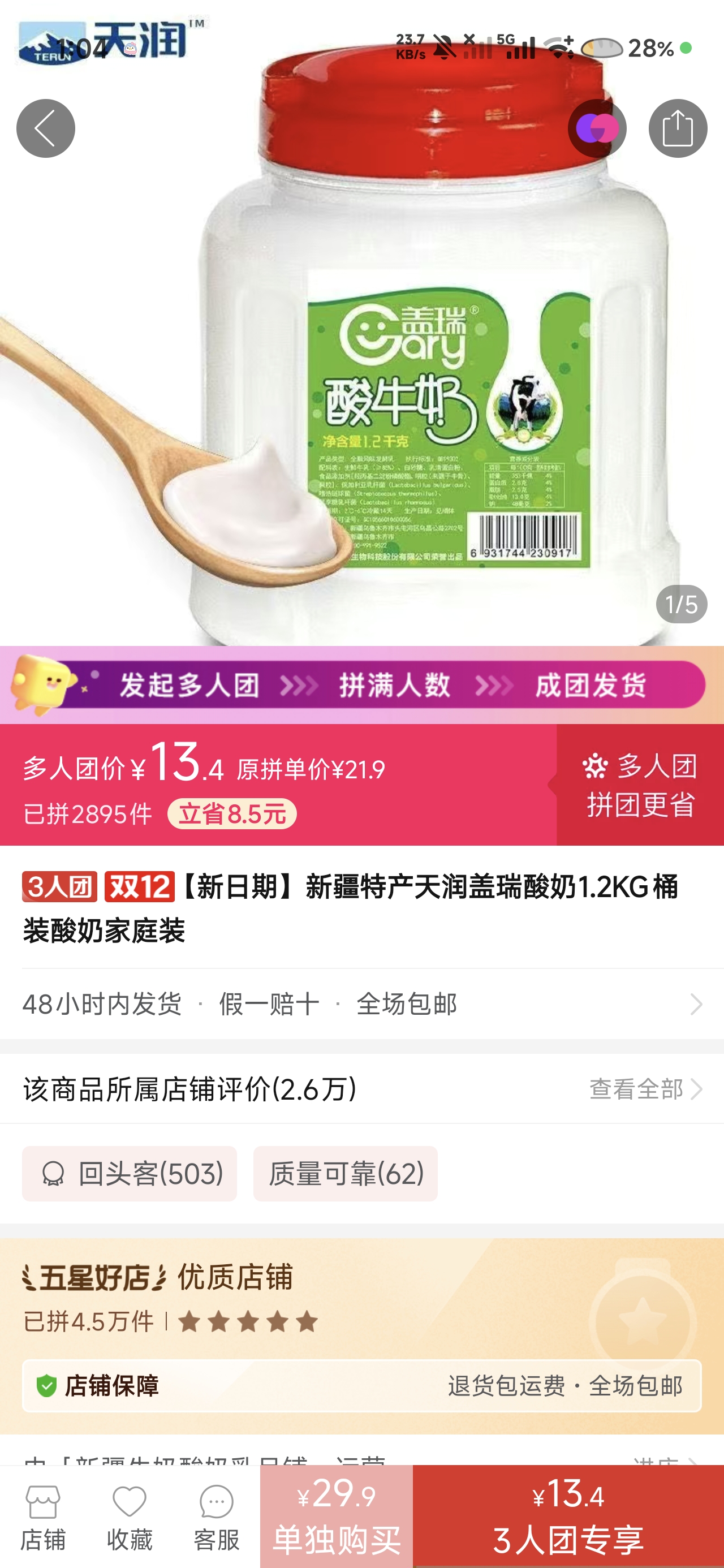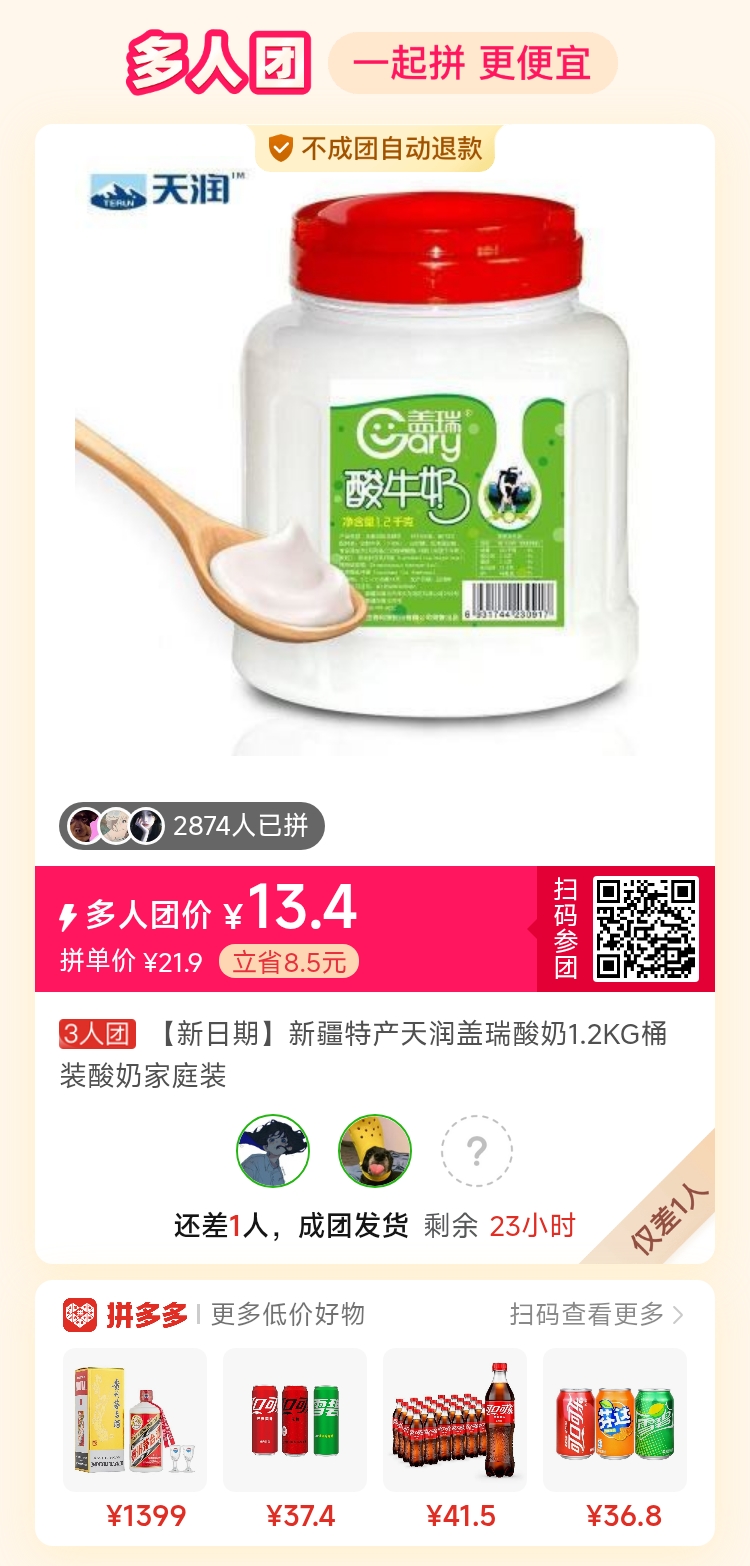 8:/⇥Iws0Iyb2HnO4Z⇤ 复制并打开拼多多APP,13.4元拼团购买【新日期】新疆特产天润盖瑞酸奶1.2KG...,仅剩2个名额