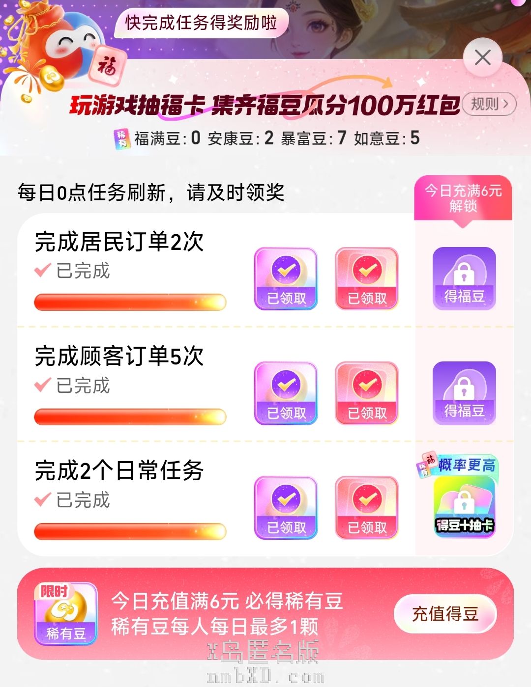 该死的,昨天终于没有那个充值任务了,给了一个福满豆,结果今天这个任务又jb回来了( ^ω^)